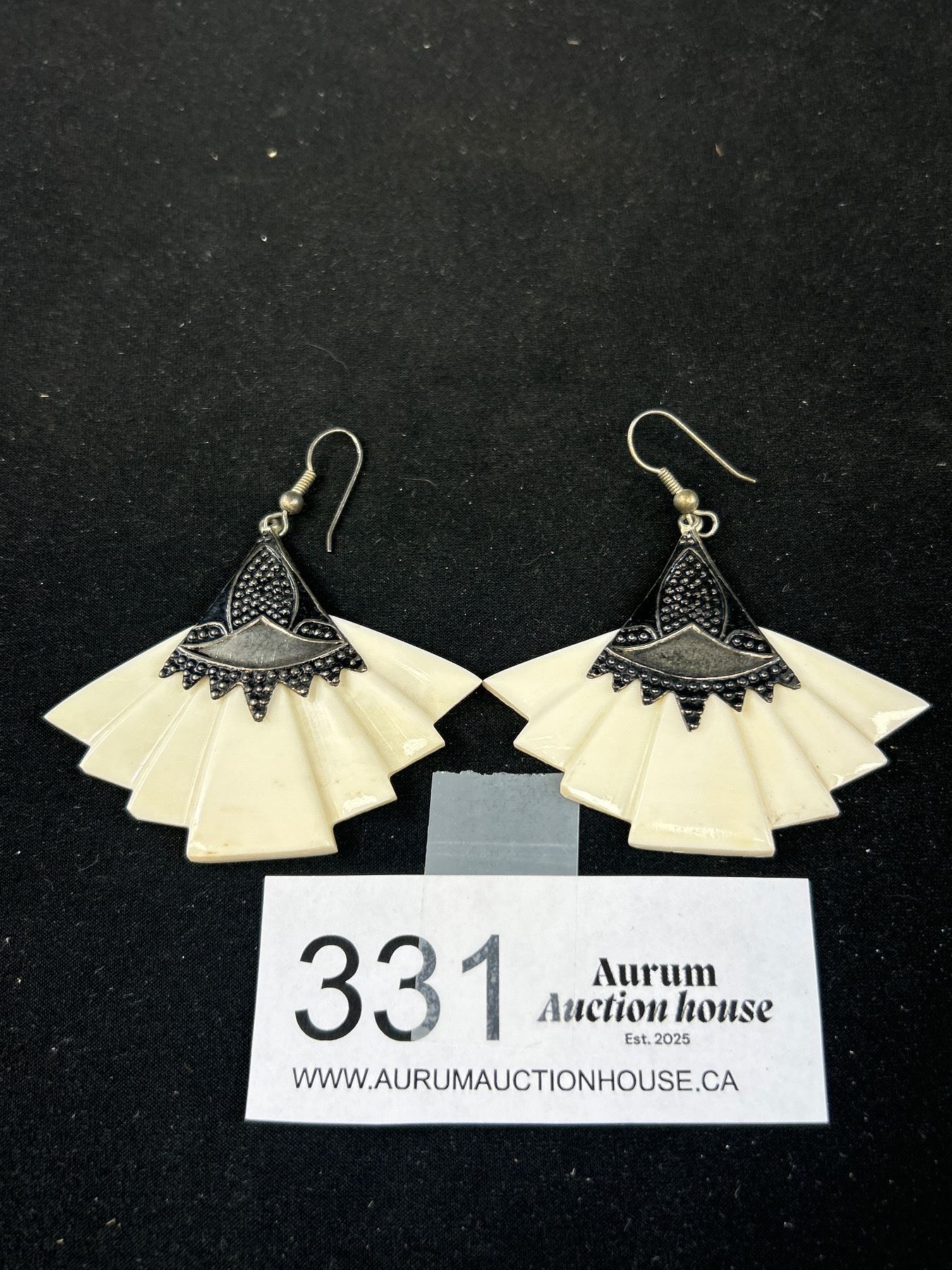 Pair of Vintage Silver/Bone Dingle Fan Design Earrings