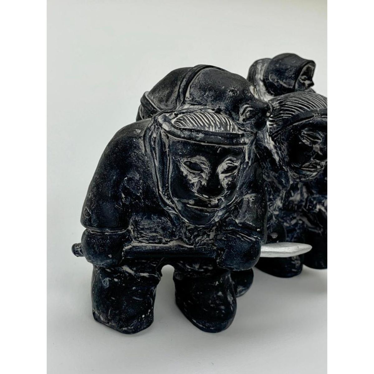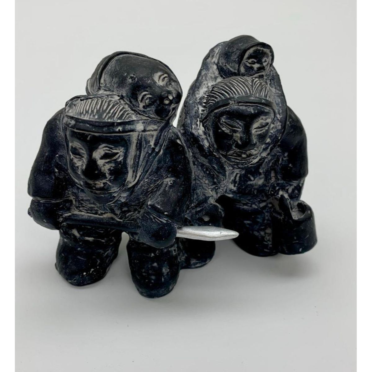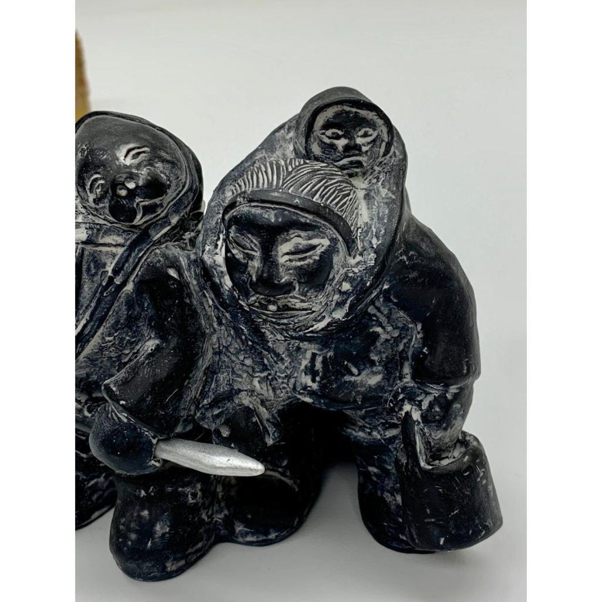 A pair of hand painted Inuit statues, with an inlaid carved mother of peal knife. Please see photos for further details.Â