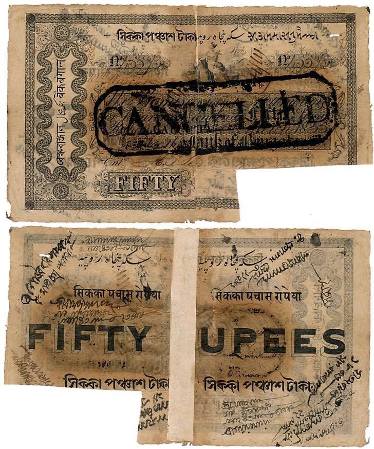 Bank of Bengal, 50 Sicca Rupees, Type 6, Dated 10th XX, Cancelled, Signature cut (Jhun# 3.6.5). Joint from the centre, very fine for type.