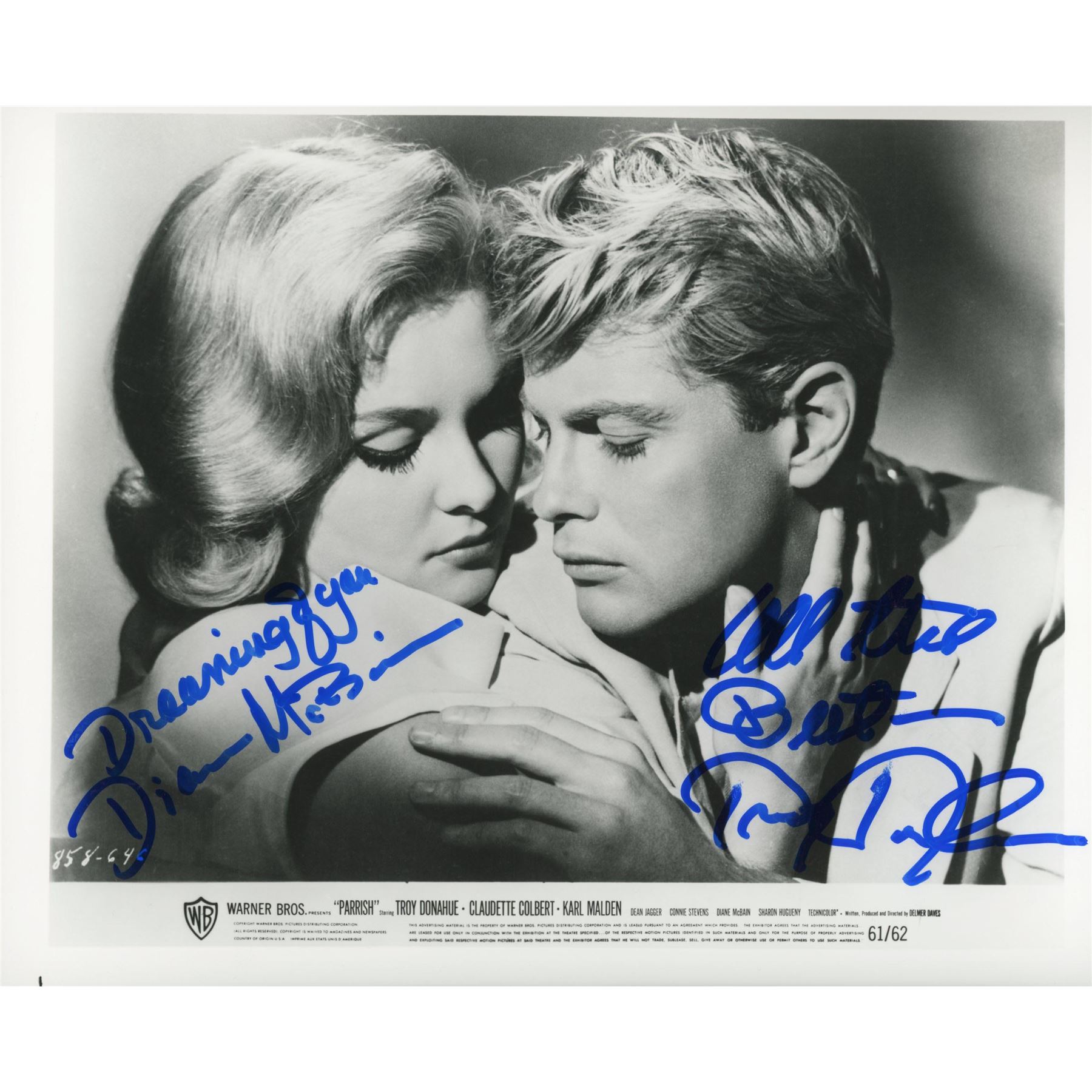 Parrish signed movie photo autographed by Diane McBain and Troy Donahue