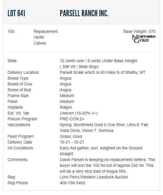 Parsell Ranch Inc. - 100 Replacement Heifers; Base Weight: 570
