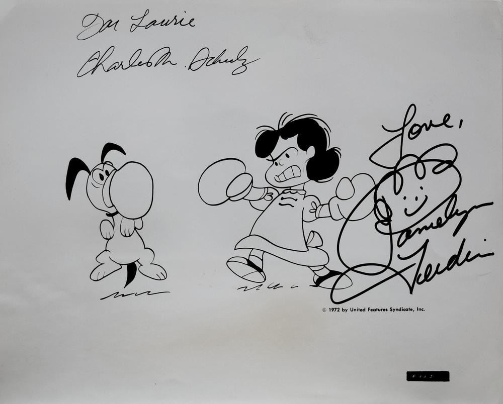 8 in. by 10 in. Cartoon Still from 1972. Signed: For Laurie Charles M. Schulz & Love, Pamelyn Ferdin