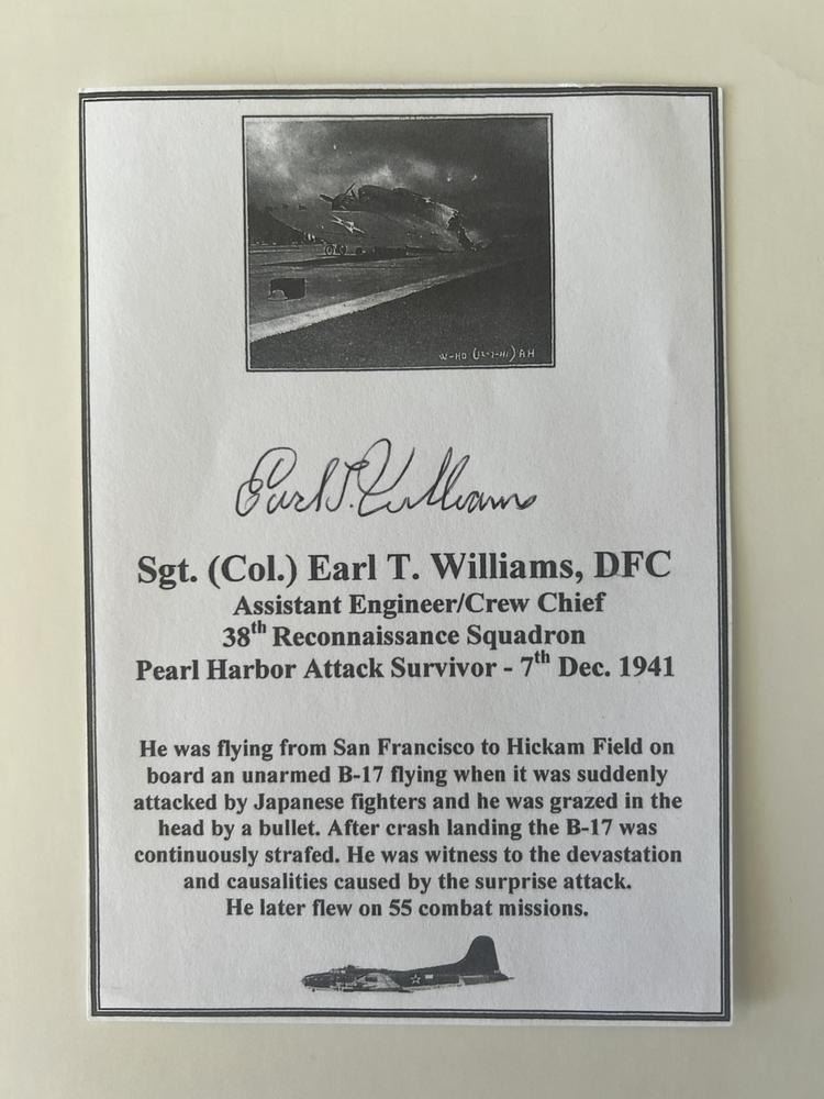 Pearl Harbor survivor Earl T. Williams original signature. 4x6 inches