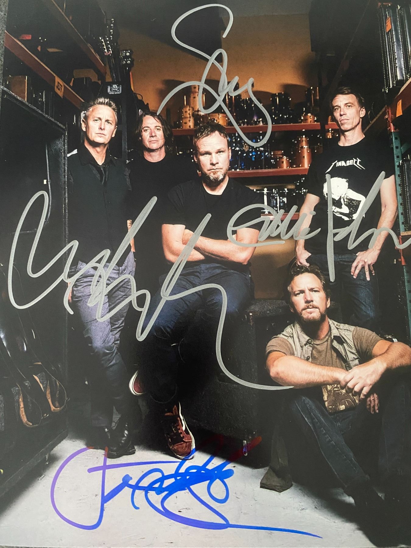 Pearl Jam Band signed photo autographed by Eddie Vedder, Stone Gossard, Jeff Ament and Mike McCready. 8x10 inches