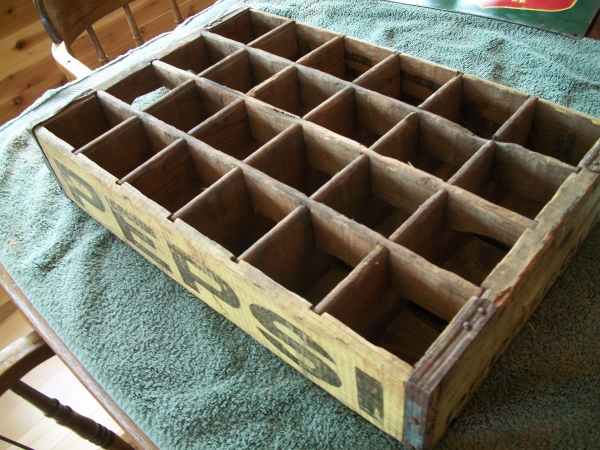 Pepsi 24 Bottle Wooden Crate - Yellow / Black Lettering