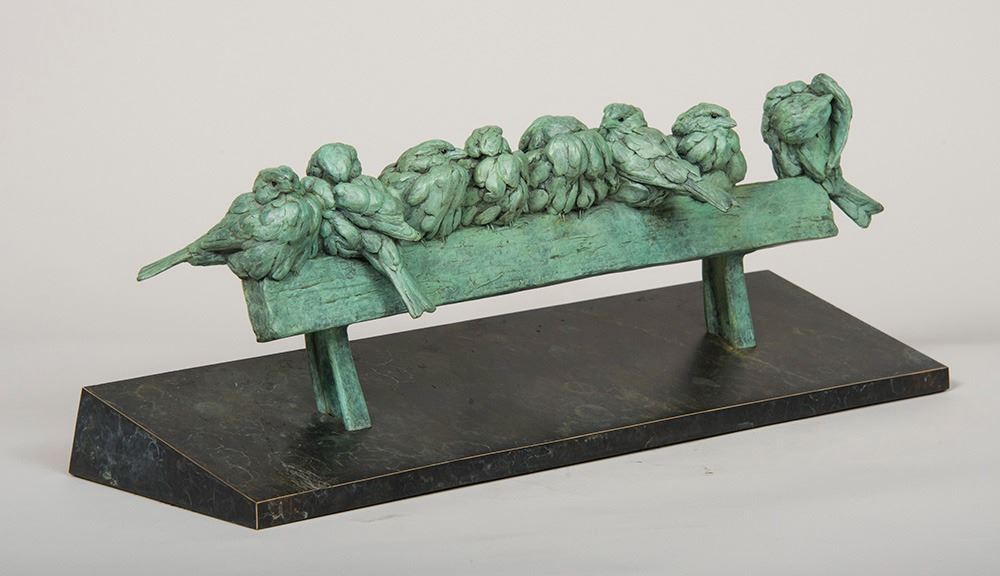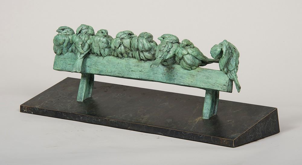 Artist: Pete Zaluzec; Title: Park Bench; Medium: Bronze, cast 3/24; Dimensions: 8 inches overall height; Signed: Signed; Framed/Base: 8 x 22.25 x 7 inches - 28 lbs.