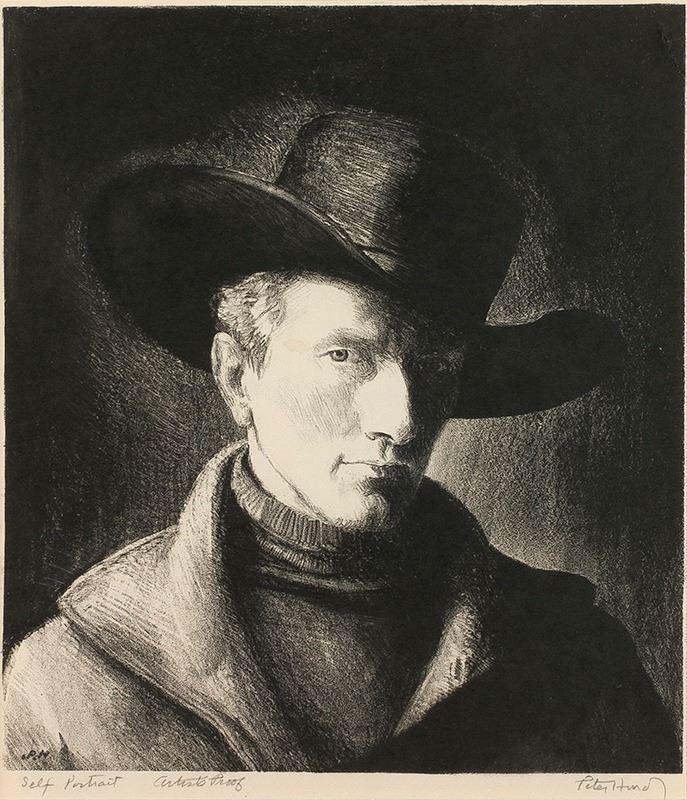 Signed l/l: Self Portrait; l/c: Artists proof; l/r: Peter Hurd