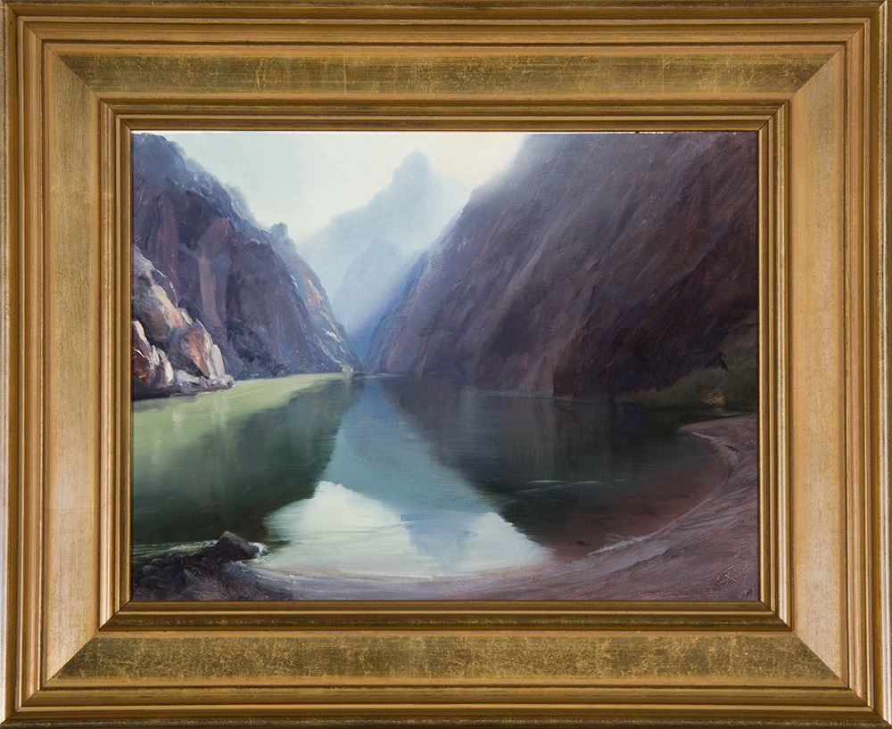 Artist: Peter Nisbet; Title: Hourglass Canyon; Medium: Oil on board; Dimensions: 9 x 12 inches; Signed: Signed lower right; Verso: Signed, titled, and dated 2003 verso; Framed/Base: 14 x 17 inches