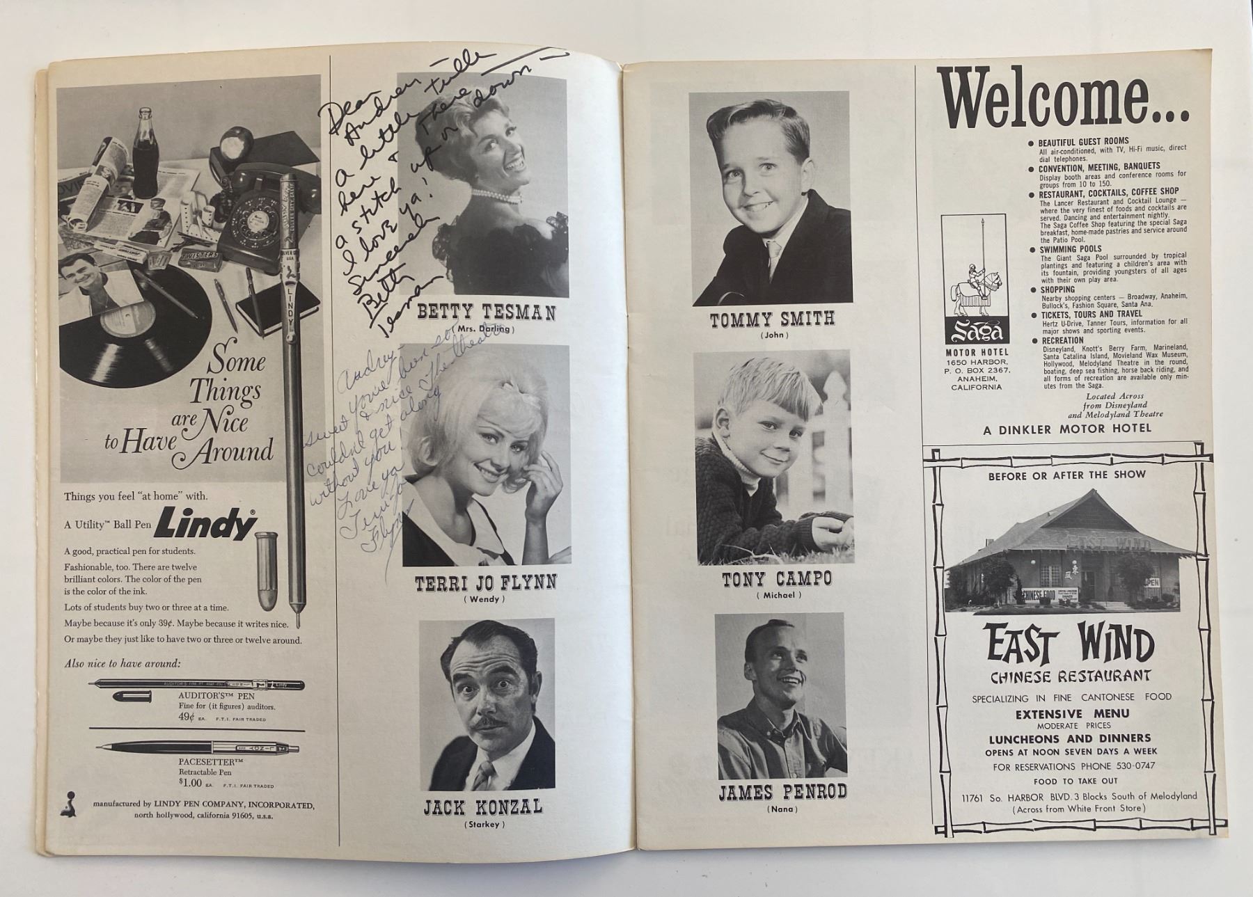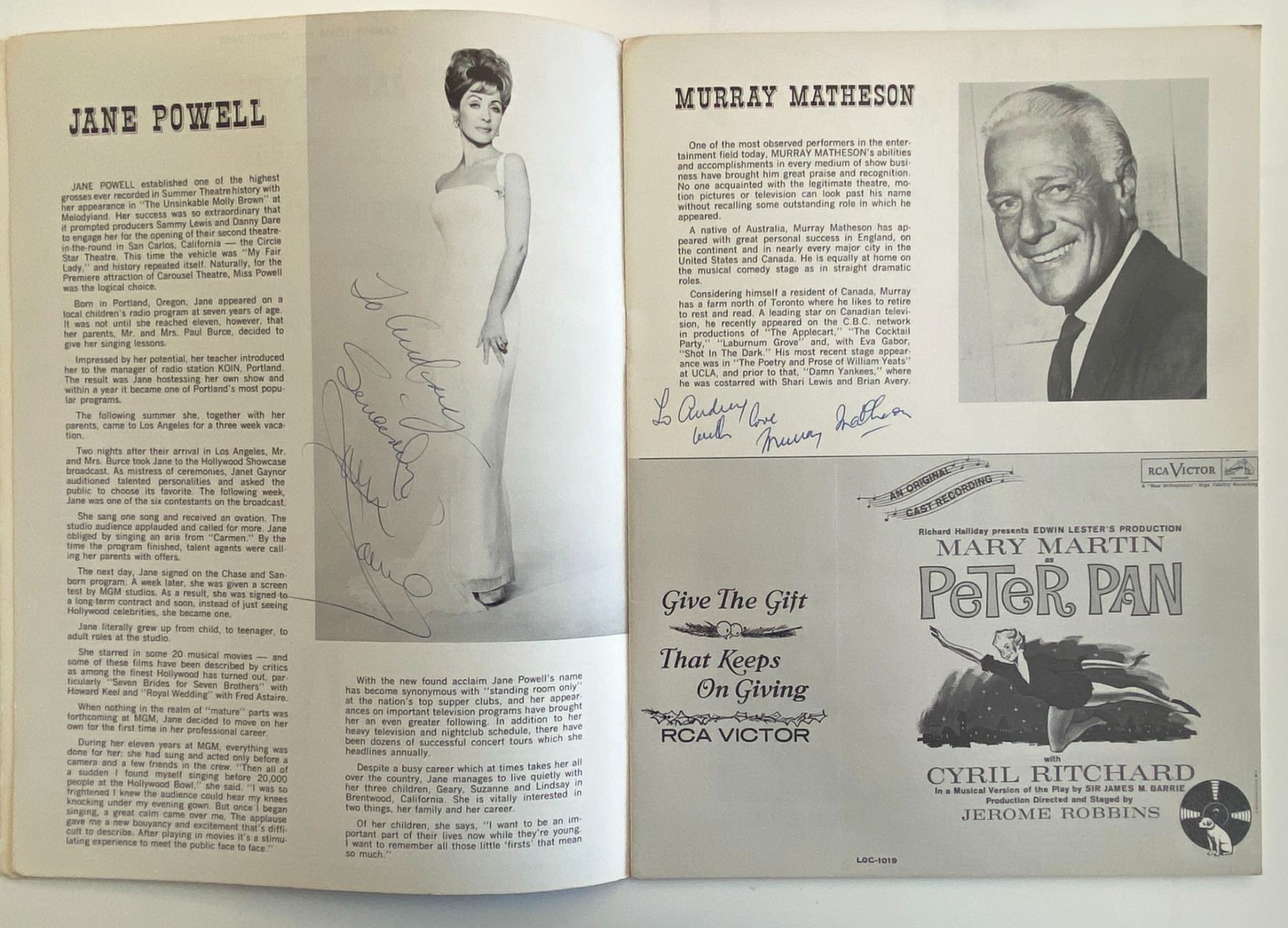 Peter Pan cast signed program autographed by Jane Powell, Murray Matheson, Betty Tesman, and Terri Jo Flynn. 9x12 inches
