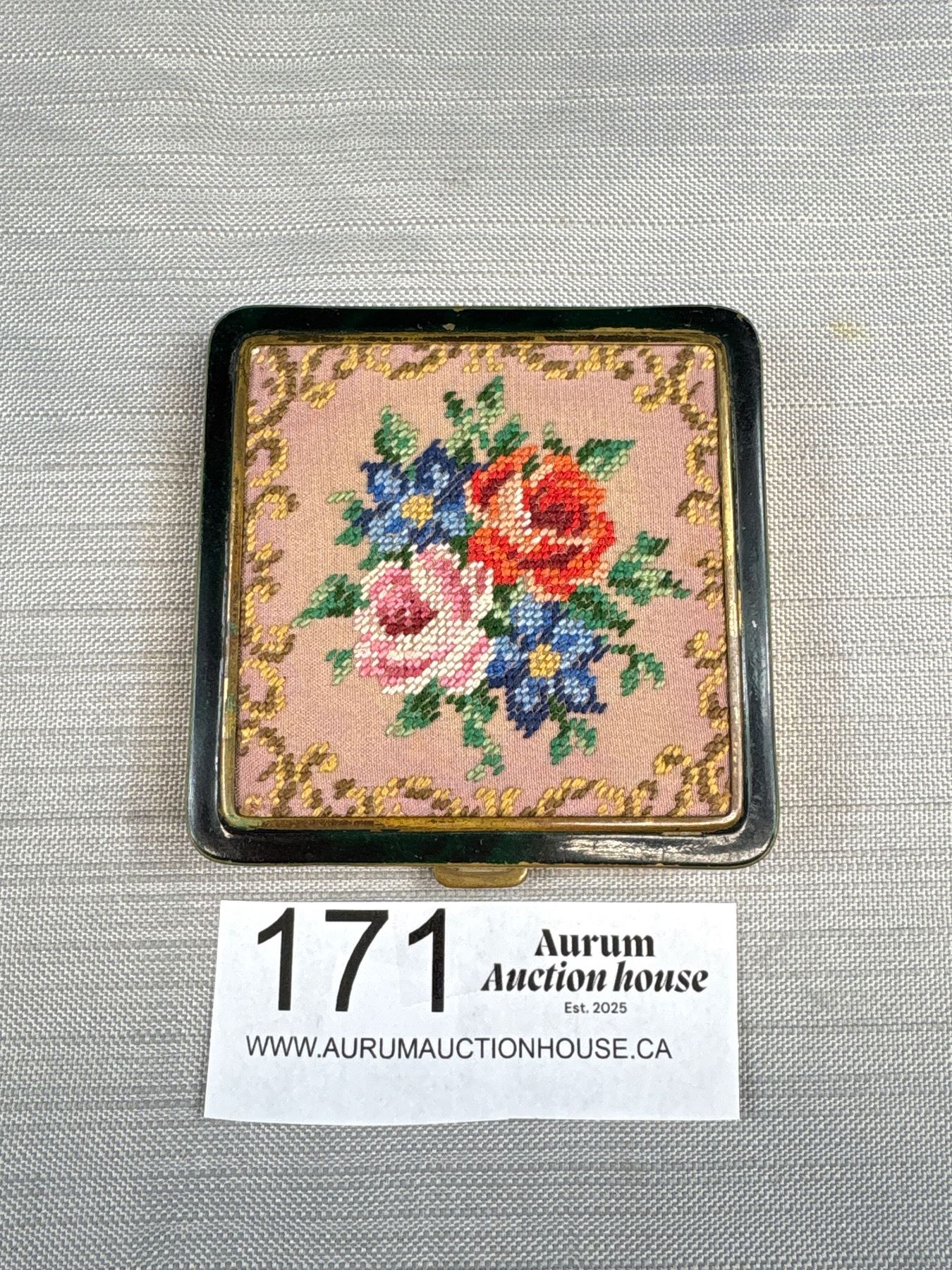 Petit Point Top Vintage 1940s-50s Ladies Compact Case