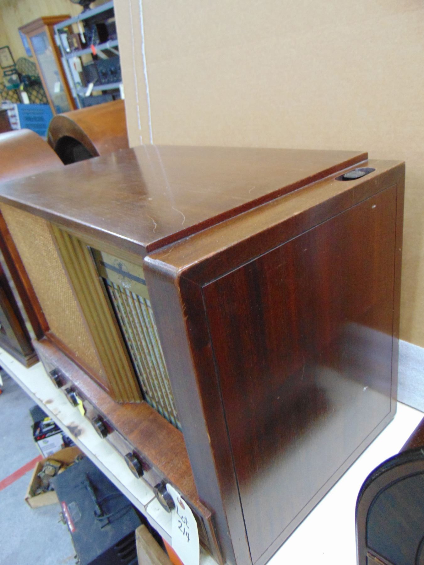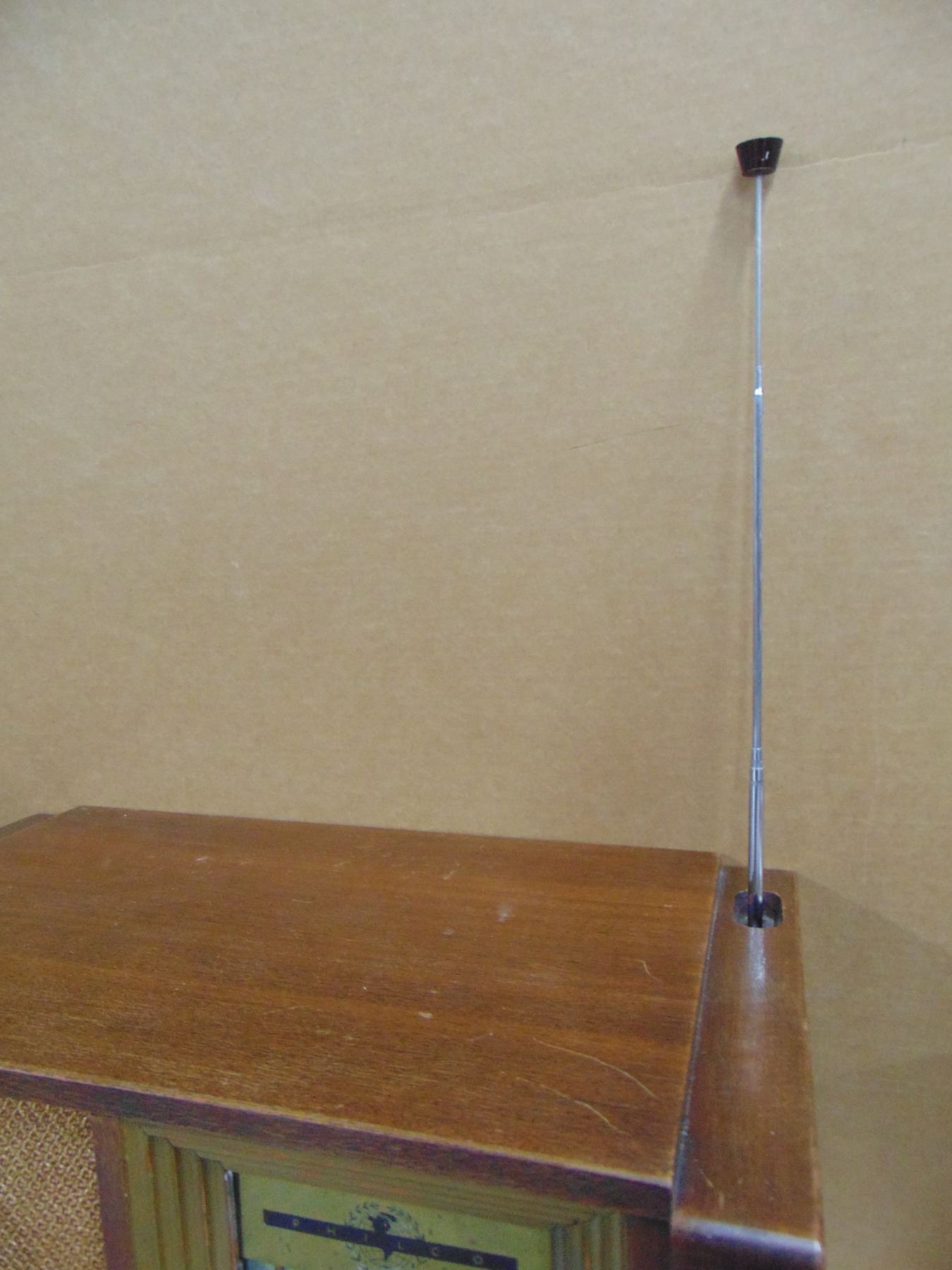 Large wood table set; model 960; nine band radios with built in whip antenna; nice condition; works