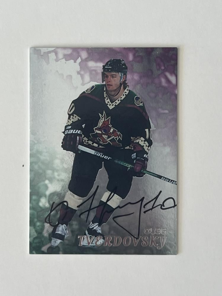 Phoenix Coyotes Oleg Tverdovsky 1998 In The Game #258 signed trading card. 2x3 inches