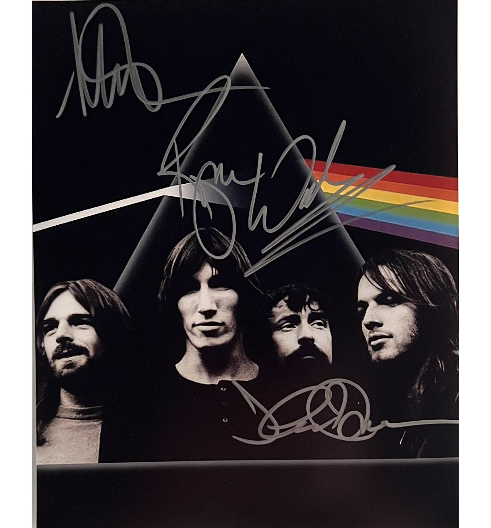 Pink Floyd band signed photo autographed by David Gilmour, Roger Waters and Nick Mason. 8x10 inches