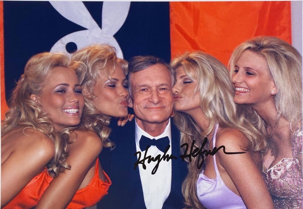 Playboy Hugh Hefner facsimile facsimile signed photo. 8x10 inches. This item is a reprint of an original autograph