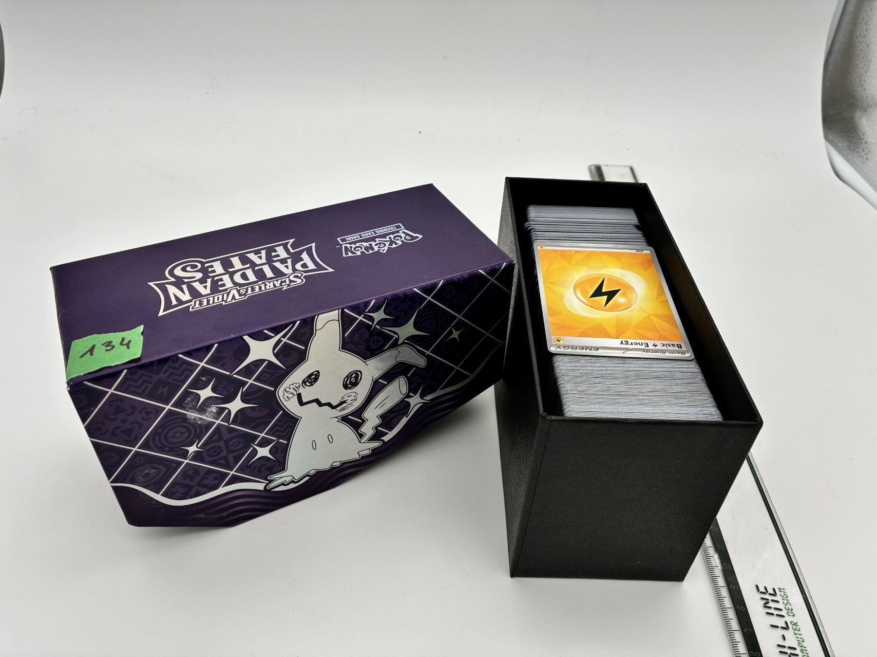 Full box of Pokémon cards.