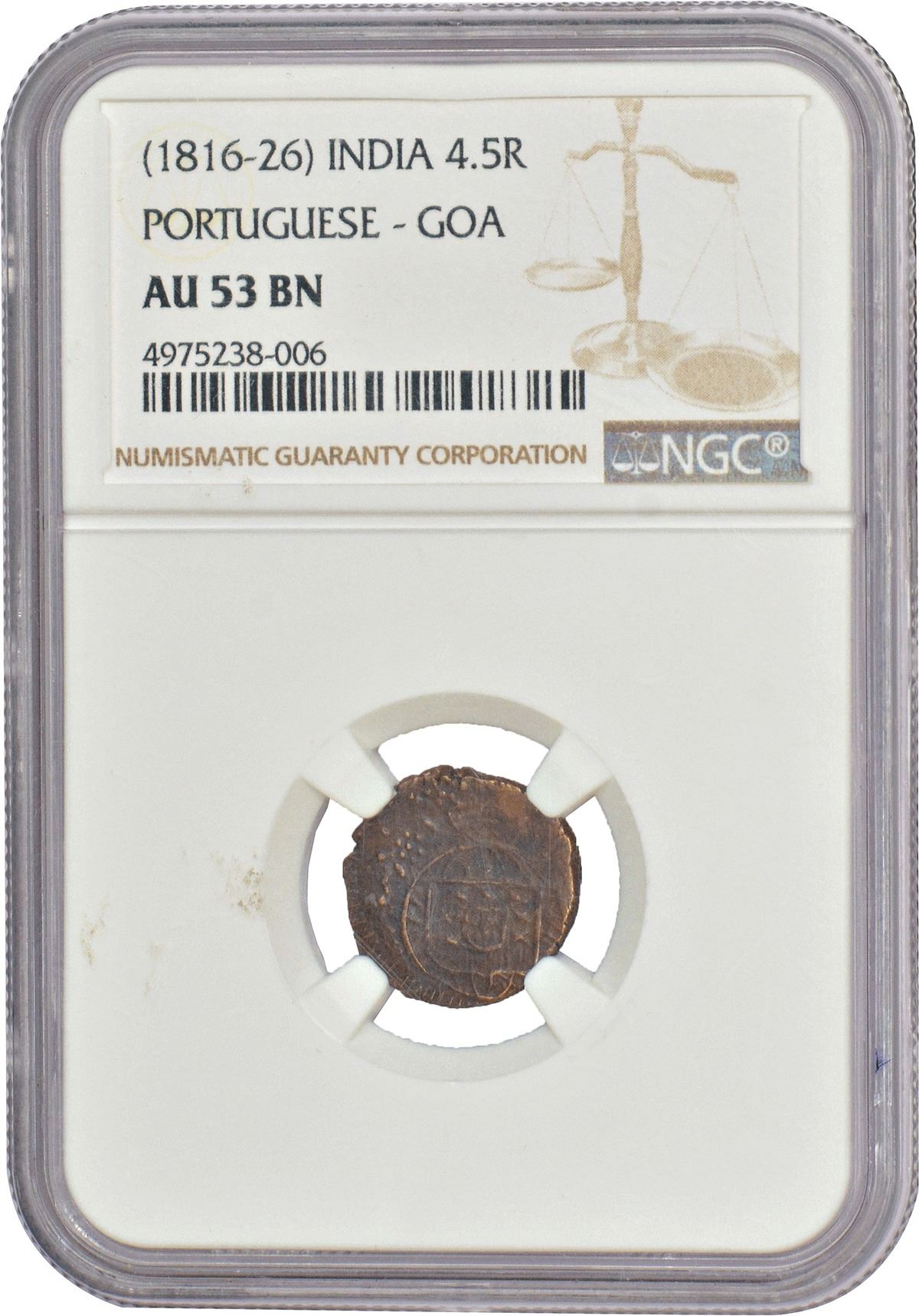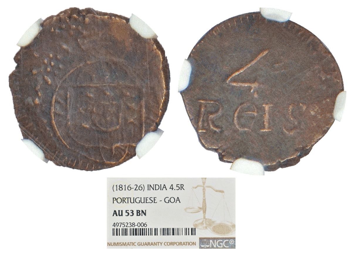 Portuguese India, D. Joao VI (1816-1826 AD), Goa, copper 4½ reis, KM 225. Obv: Crowned arms. Rev: Value.