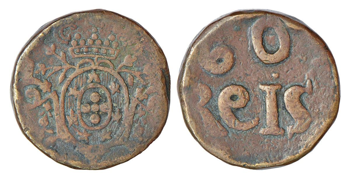 Portuguese India, D. Joao VI (1816-1826 AD), Goa, copper tanga (60 reis), KM 218, 38.93g. Obv: Crowned oval arms. Rev: Value.