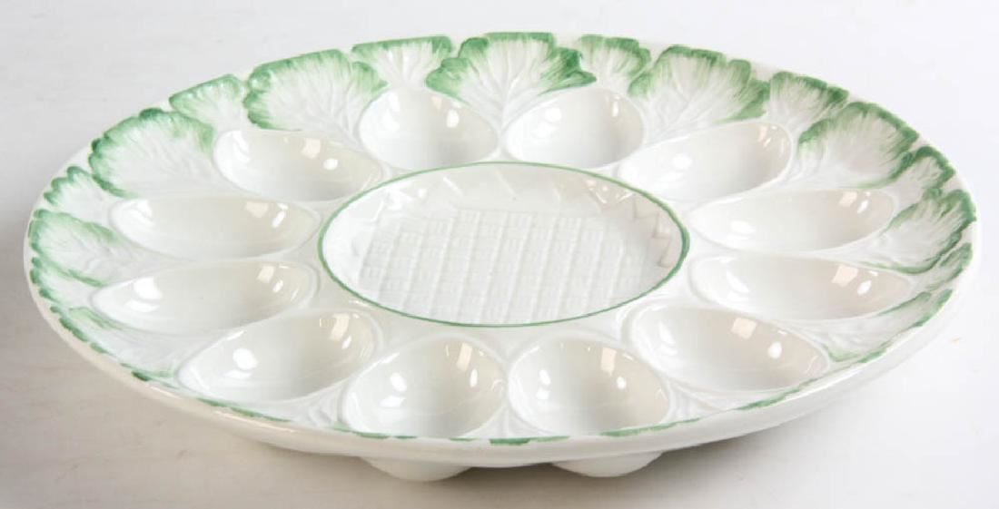 Pottery and porcelain pieces to include: Henriot Quimper covered pot; Italian oyster plate; studio pottery tray signed 'L.L. Mehlin'; baking dish signed 'Portugal; six (6) French white porcelain onion soup bowls with lion head handles and eight (8) Portuguese melon bowls, largest piece measures 9" H x 8" diameter. Provenance: Broomfield, Colorado estate.