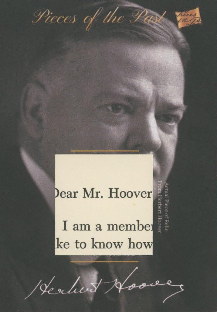 Herbert Hoover Piece of the Past Relic card from 2018 The Bar Pieces of the Past Hybrid Edition.
