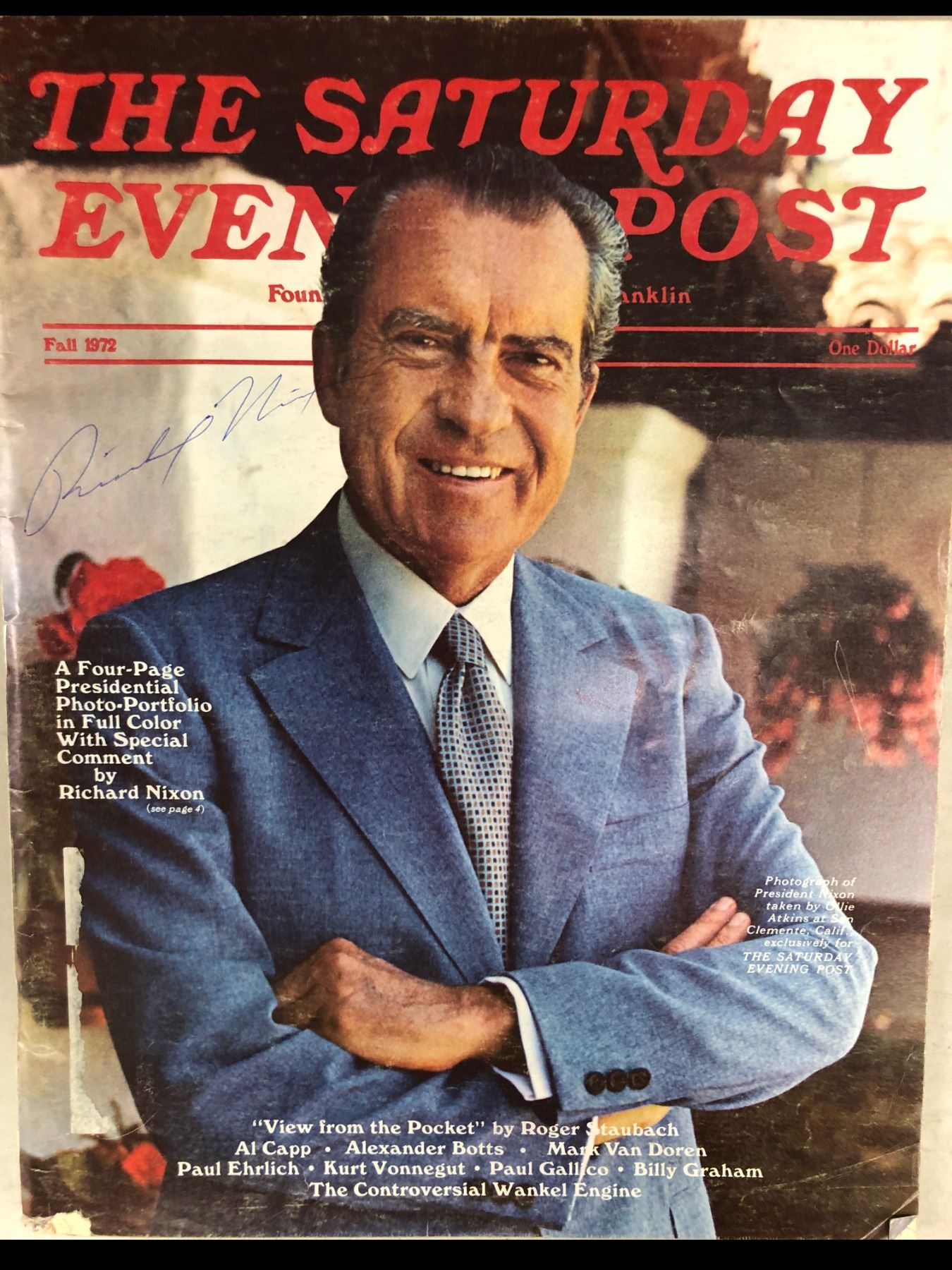 The Saturday Evening Post magazine autographed by Richard Nixon dated Fall 1972. GFA Authenticated
