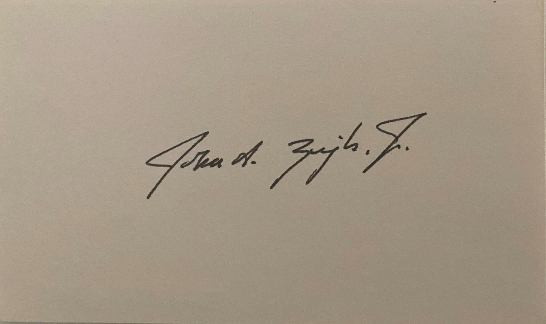 President of the NHL John A. Ziegler Jr original signature. 3x5 inches