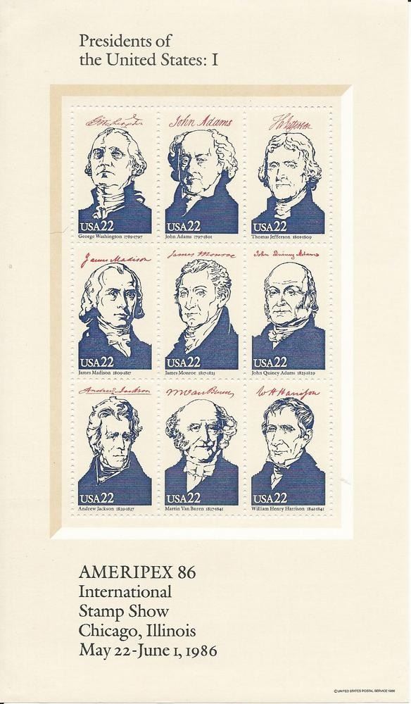 AMERIPEX '86 Presidents, souvenir sheet, 9 x 22c