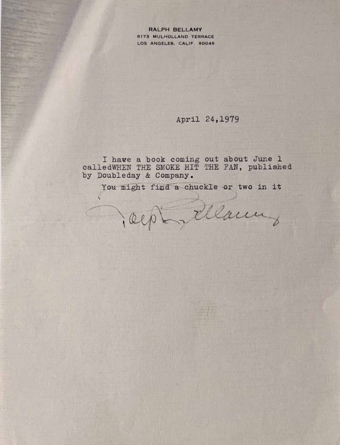 Ralph Bellamy signed letter