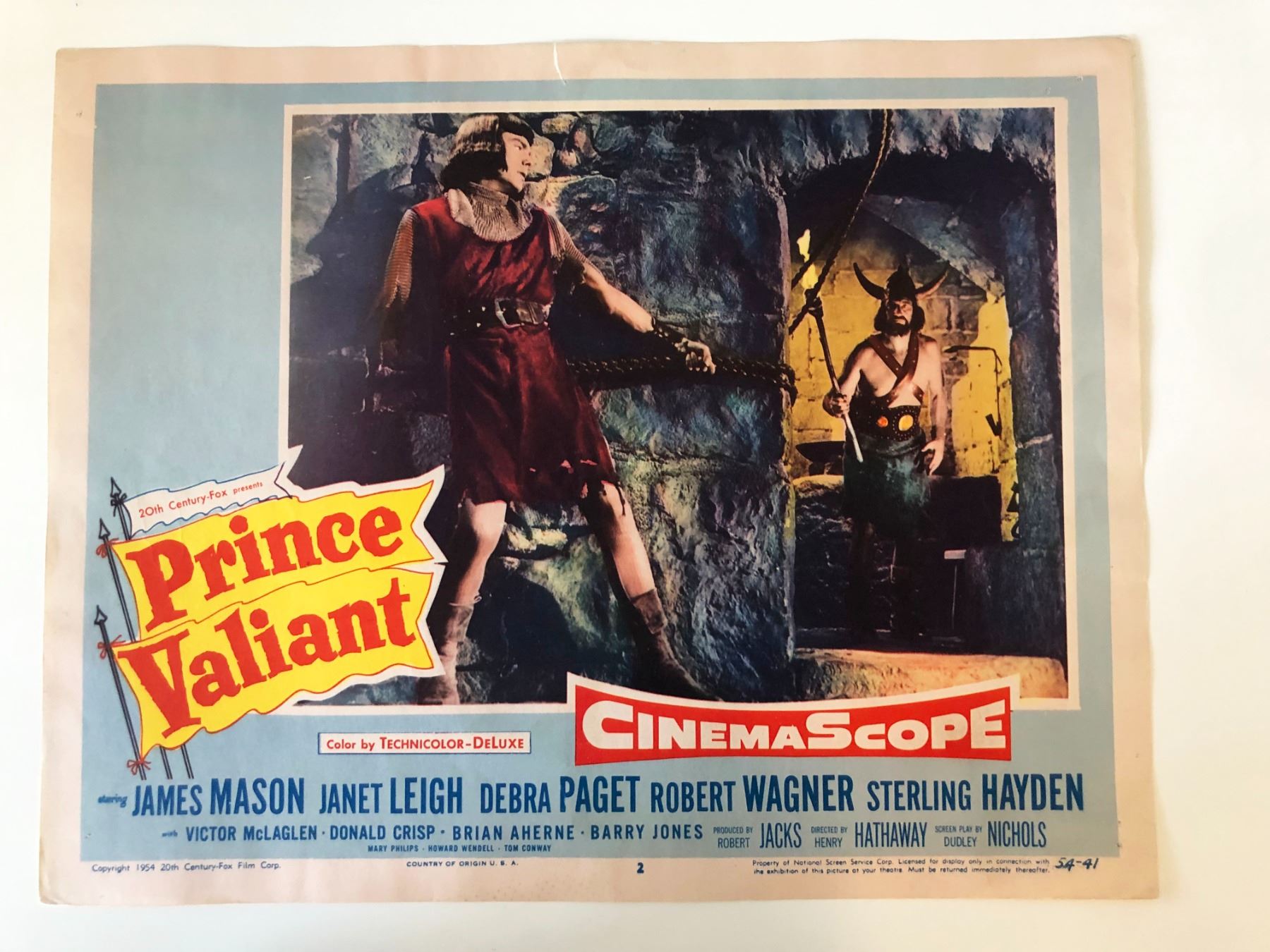 Prince Valiant original 1954 vintage lobby card on heavy card stock. 11x14 inches