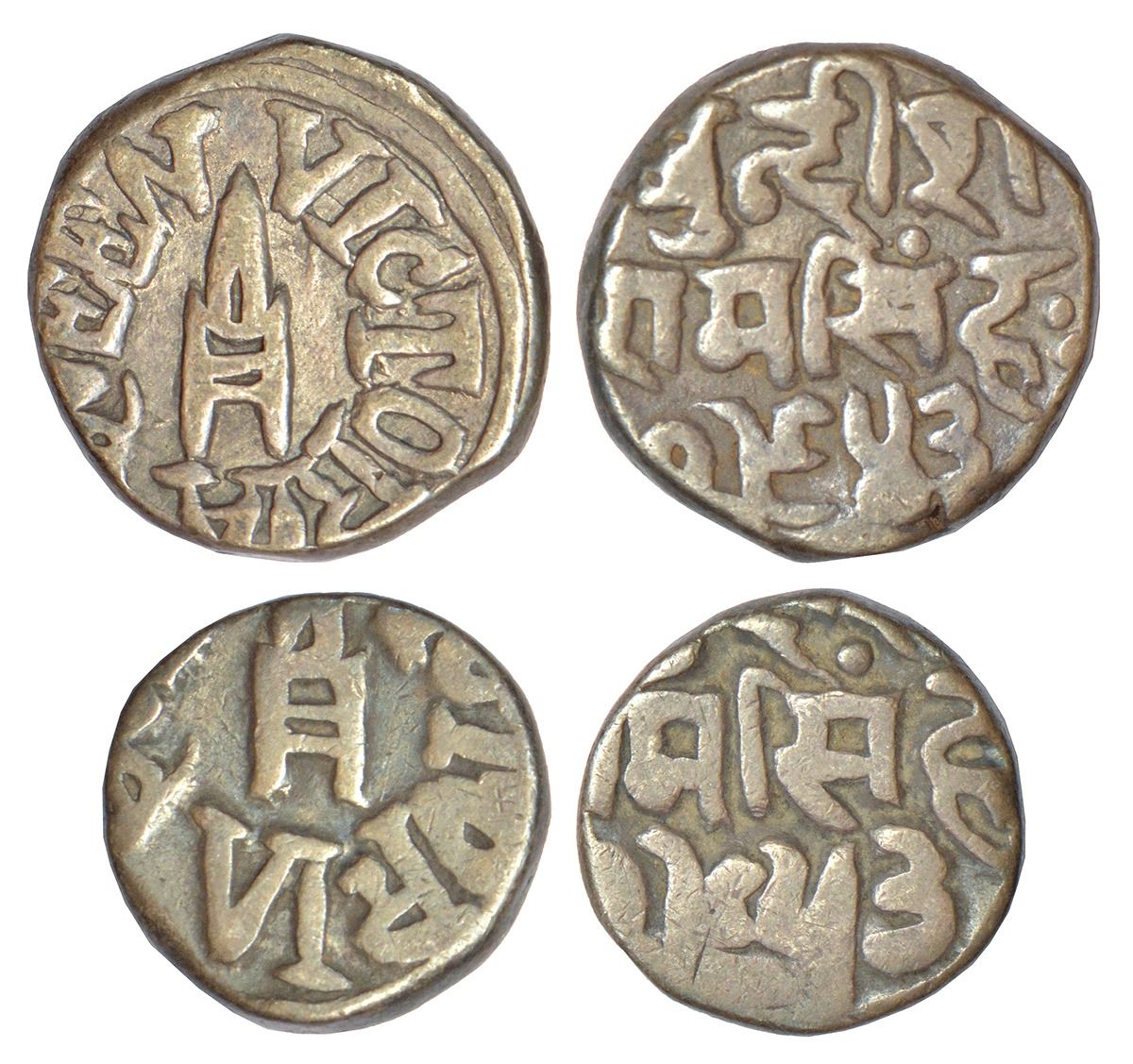 Princely States: Bundi, Ram Singh (1824-1889AD), silver coins (2), with the name of Queen Victoria, with katar symbol on obverse and legend bundish ram singh on reverse, 1x rupee, VS 1943, KM Y9, 10.62g and 1x ½ rupee, VS 1953, KM Y8, 5.23g. (2 coins) (From the collection of Mr. I.K. Kejriwal)