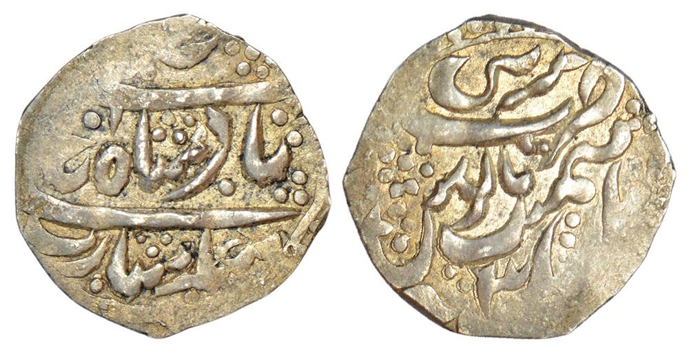 Garhwal, Pradip Shah (1717-1772 AD), silver timasha, Srinagar mint, in the name of Shah Alam II, RY 3, KM C10, 2.06g.