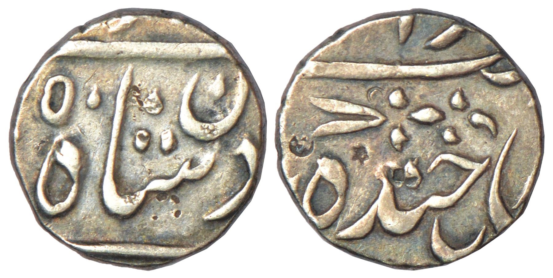 Hyderabad, Sikandar Jah (1803-1829 AD), silver ½ rupee, Farkhanda Bunyad Hyderabad mint, in the name of Muhammad Akbar II, AH (12)50, KM C47, 5.54g.