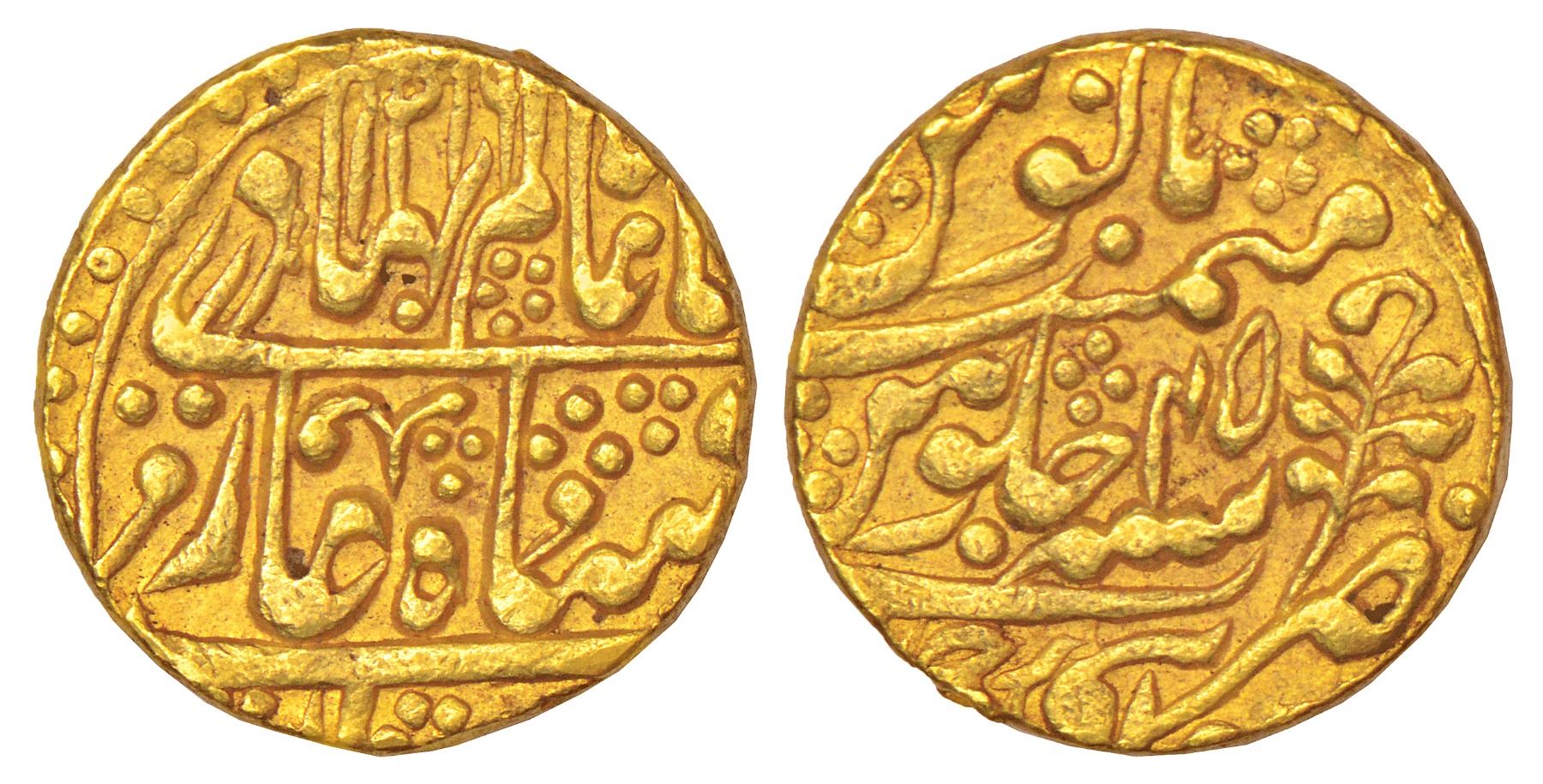 Jaipur, Mughal style, gold mohur, Sawai Jaipur mint, in the name of Shah Alam II, AH 1216/RY 45, KM 55, Haritwal JAI 71, 10.87g.