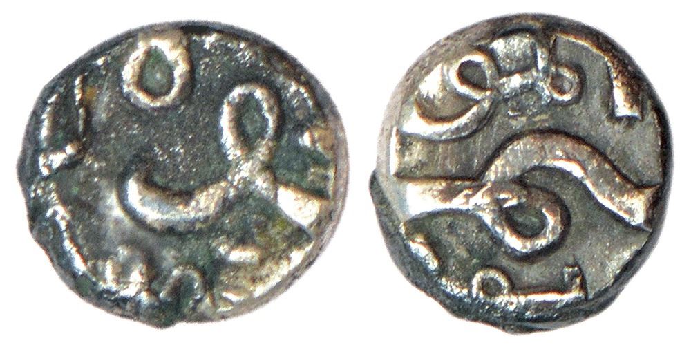 The smallest fraction so far reported for Deshalji I's silver coins is a quarter kori (RDS 90.1). This coin is therefore a new and exciting denominational addition to Kutch's well-structured coinage. The reign of Deshalji marked a 'golden era' in early history of Kutch state. Freed from the risk of invasions, Deshalji gave over the fiscal management of his kingdom to one Devkaran Sheth. He helped to increase the revenue of state, at times using his own resources. Commerce was encouraged and the land revenue fostered by a useful system of accounts, and by setting up agents of the state in every town who helped the subjects to raise funds. By these means, Kutch's revenue went up to 18 lakh koris per annuum. The emphasis on sound fiscal management is witnessed in coinage issued in Deshalji's reign.