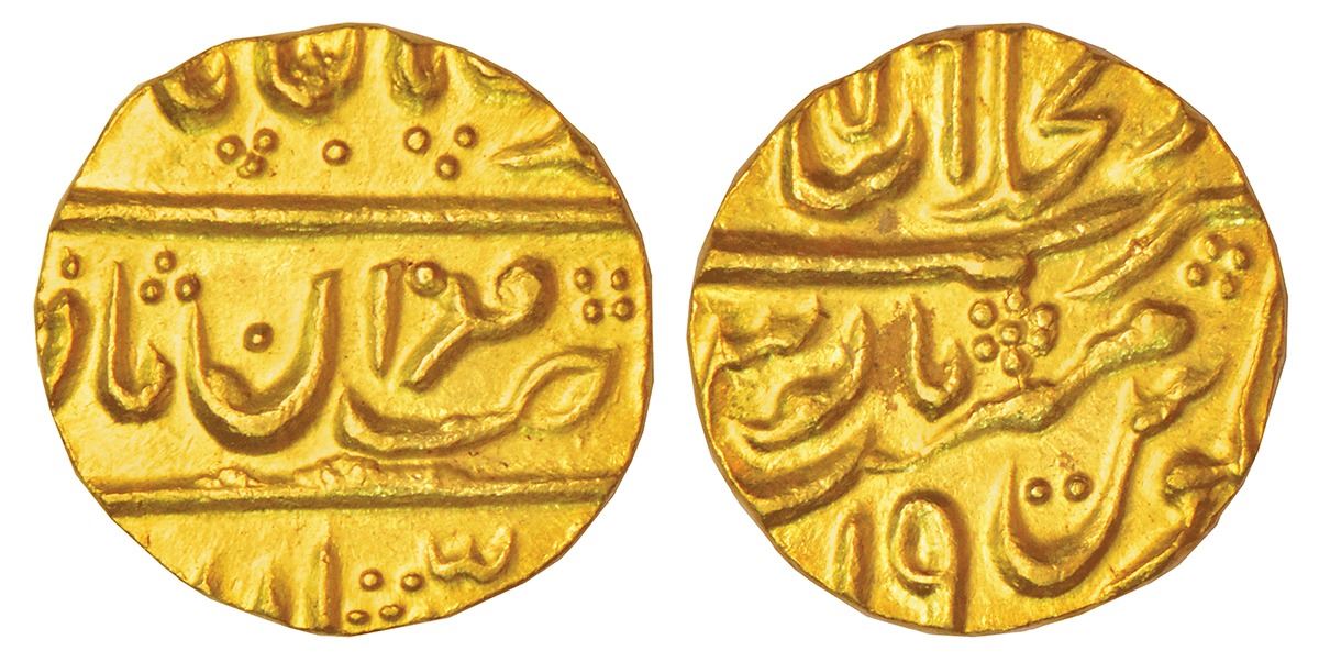 Some scholars suggest that these fractional mohurs were struck at Bhilwara in Mewar state.
