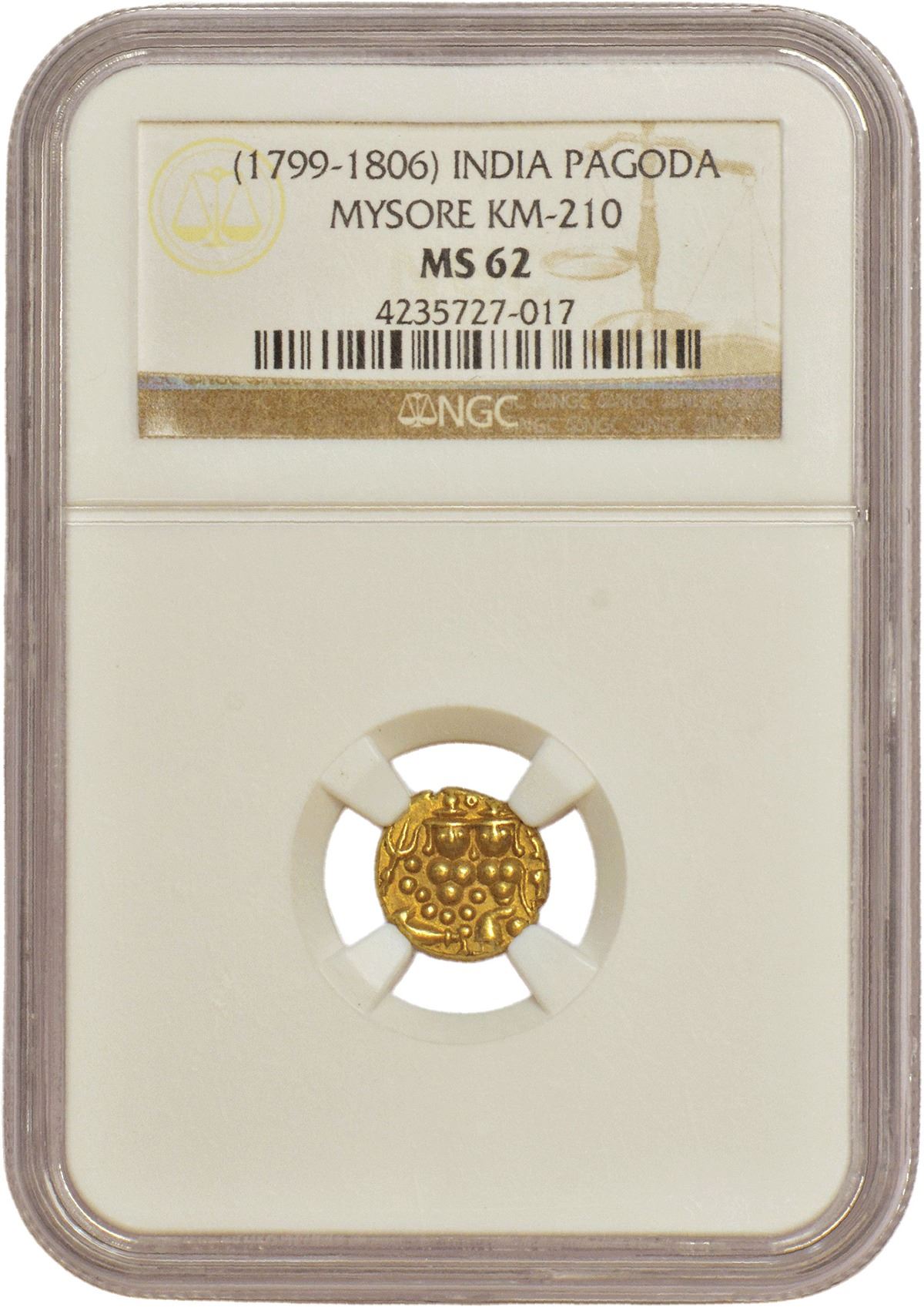 Mysore, Krishnaraja Wodeyar (1799-1868 AD), gold pagoda, KM C210. Obv: Shiva Parvati seated. Rev: Devanagari legend Sri Krishna Raja in three lines.