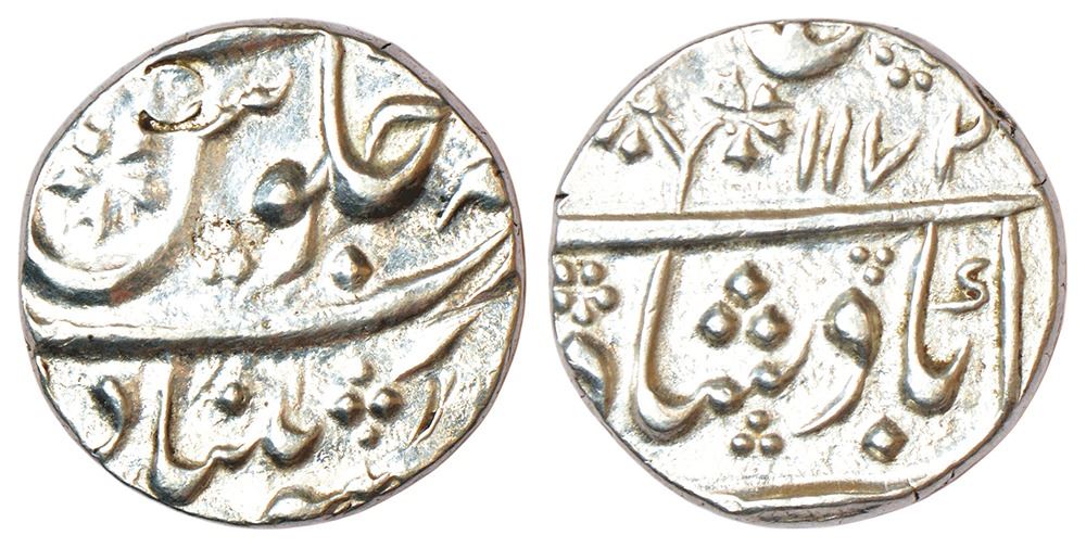 Nizam of Hyderabad, silver ½ rupee, Khujista Bunyad mint, in the name of Alamgir II, AH 1172, 5.65g.