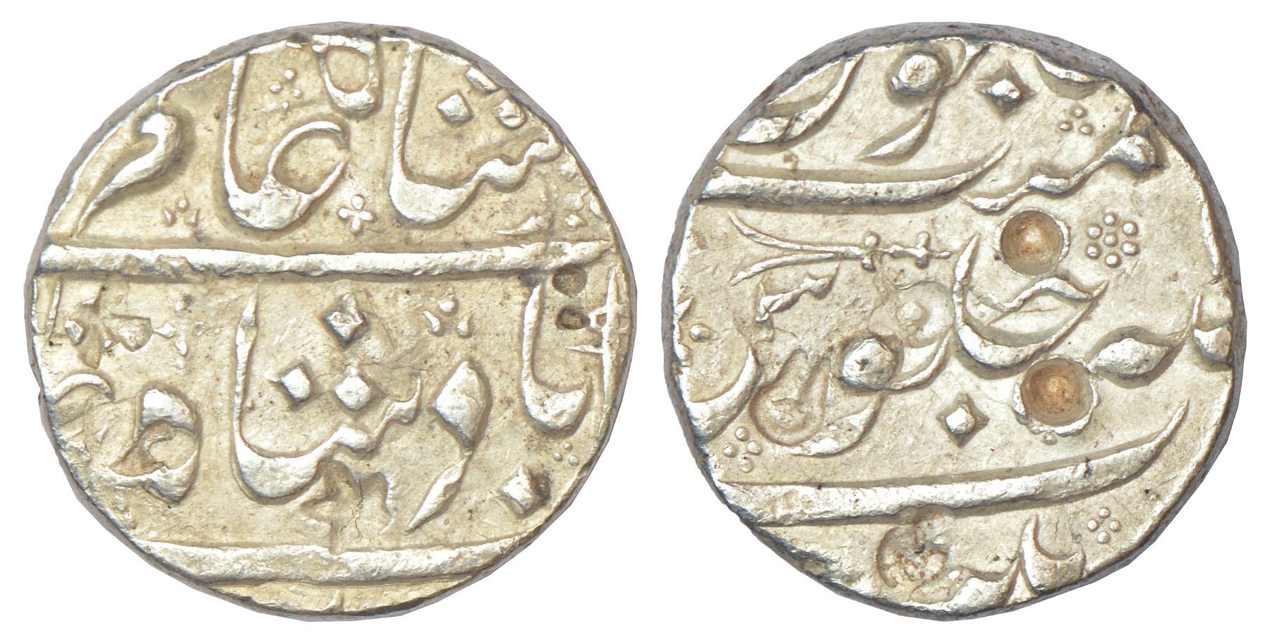 Nizams of Hyderabad - silver rupee, in the name of Shah Alam II, Beer mint (tentatively read), with symbol of 'Zulfiqar', the two-bladed sword of Imam 'Ali on the reverse, unpublished in major sources like KM, 11.38g.
