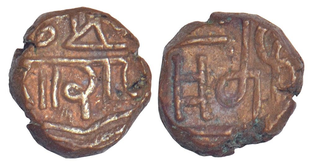 Porbandar, British Protectorate, copper ½ trambiyo, in the name of Muzaffar Shah with devanagari 'Shri Rana' on obverse, KM C30, 1.91g.