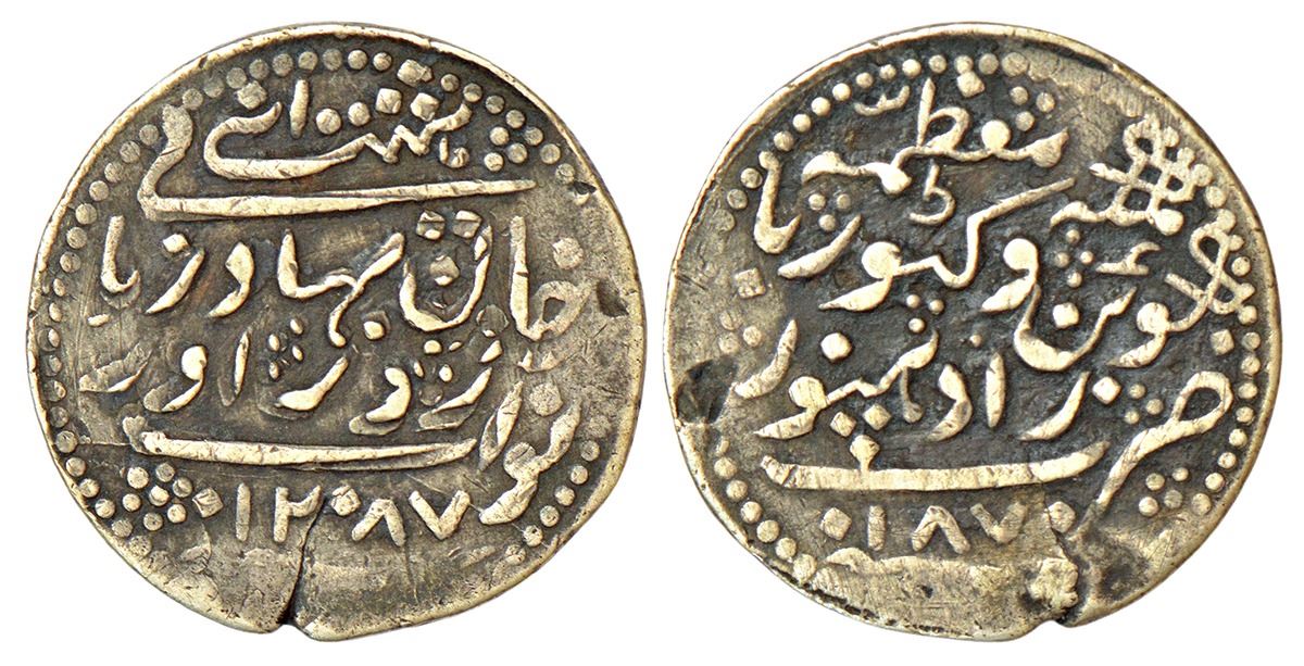 Radhanpur, Zorawar Khan (1825-1874 AD), silver 8 annas (½ rupee), Radhanpur mint, with the name of Queen Victoria, AH 1287/AD 1870, KM 10, 5.76g.