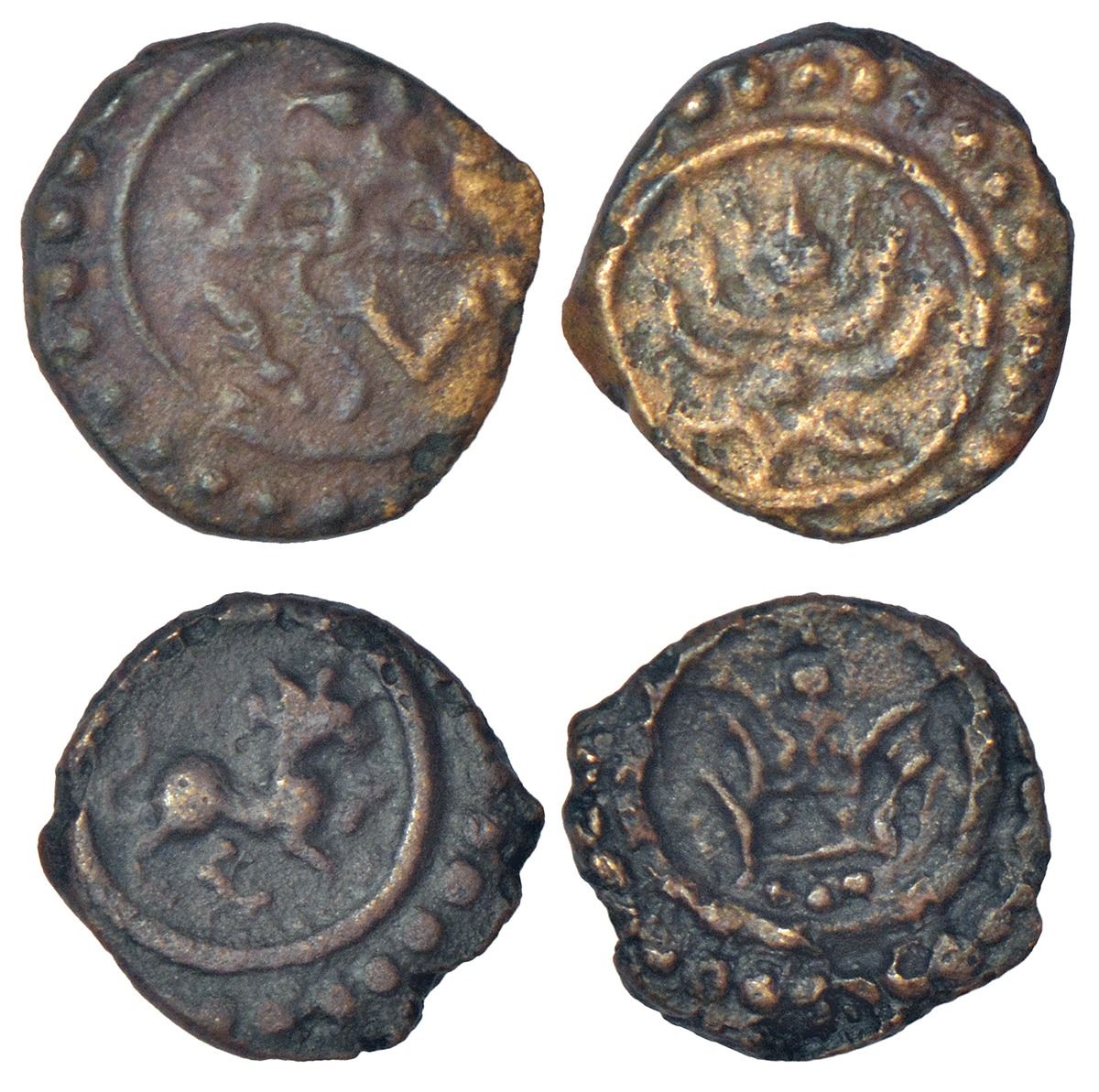 Travancore, copper thira cash (2), (A) BS 183.1, 1.10g. Obv: Garuda standing facing left within circle, dotted border in margin. Rev: Flower in circle, dotted border in margin and (B) BS 288.2, 0.87g. Obv: Lion facing right within circle, dotted border in margin. Rev: Double Umbrella within circle, dotted border in margin. (2 coins)