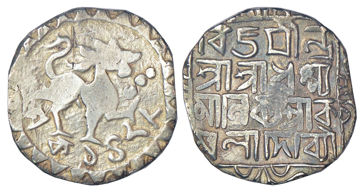 Princely States: Tripura, Dhanya Manikya, silver tanka, citing Queen Kamala, 1428, R&B-T 66, 10.36g.