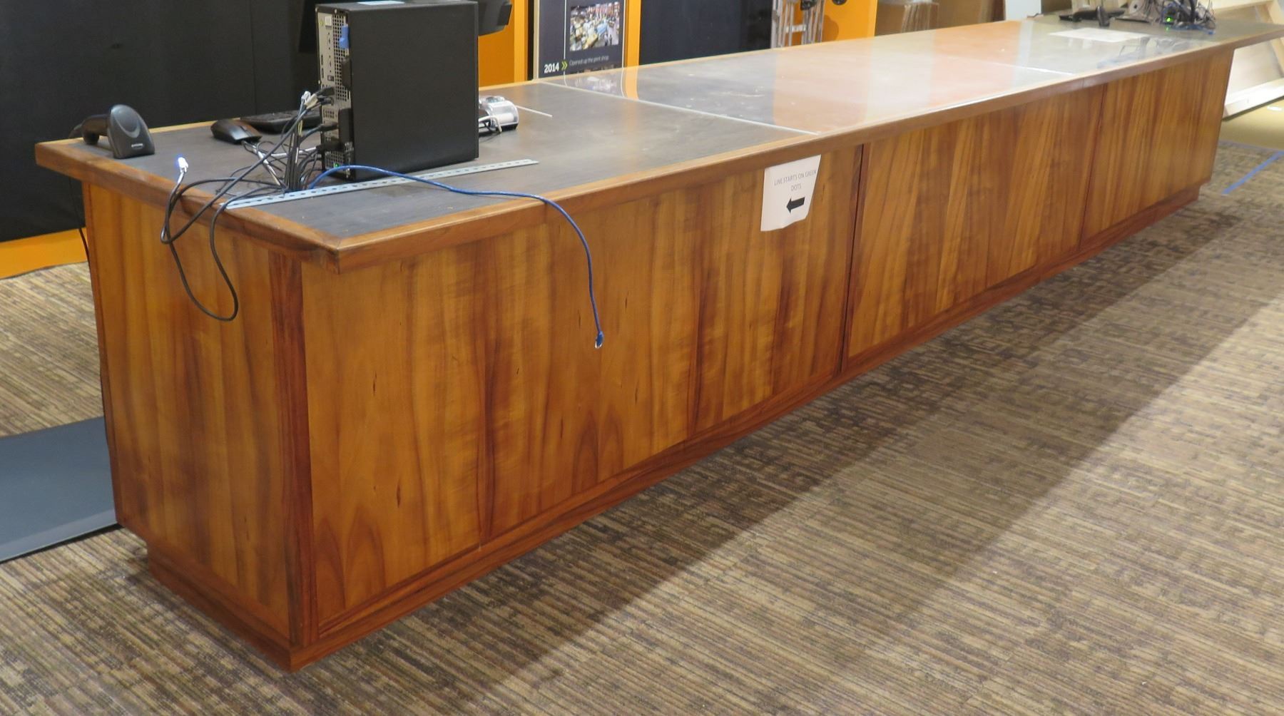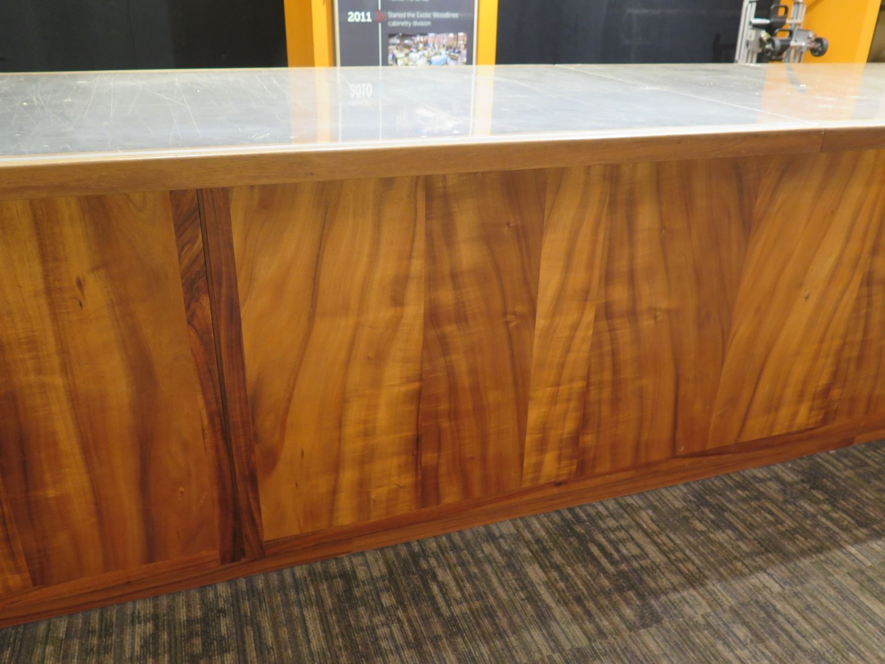 Production Station - Koa Veneer w/ Gray Counter and Koa Edge.