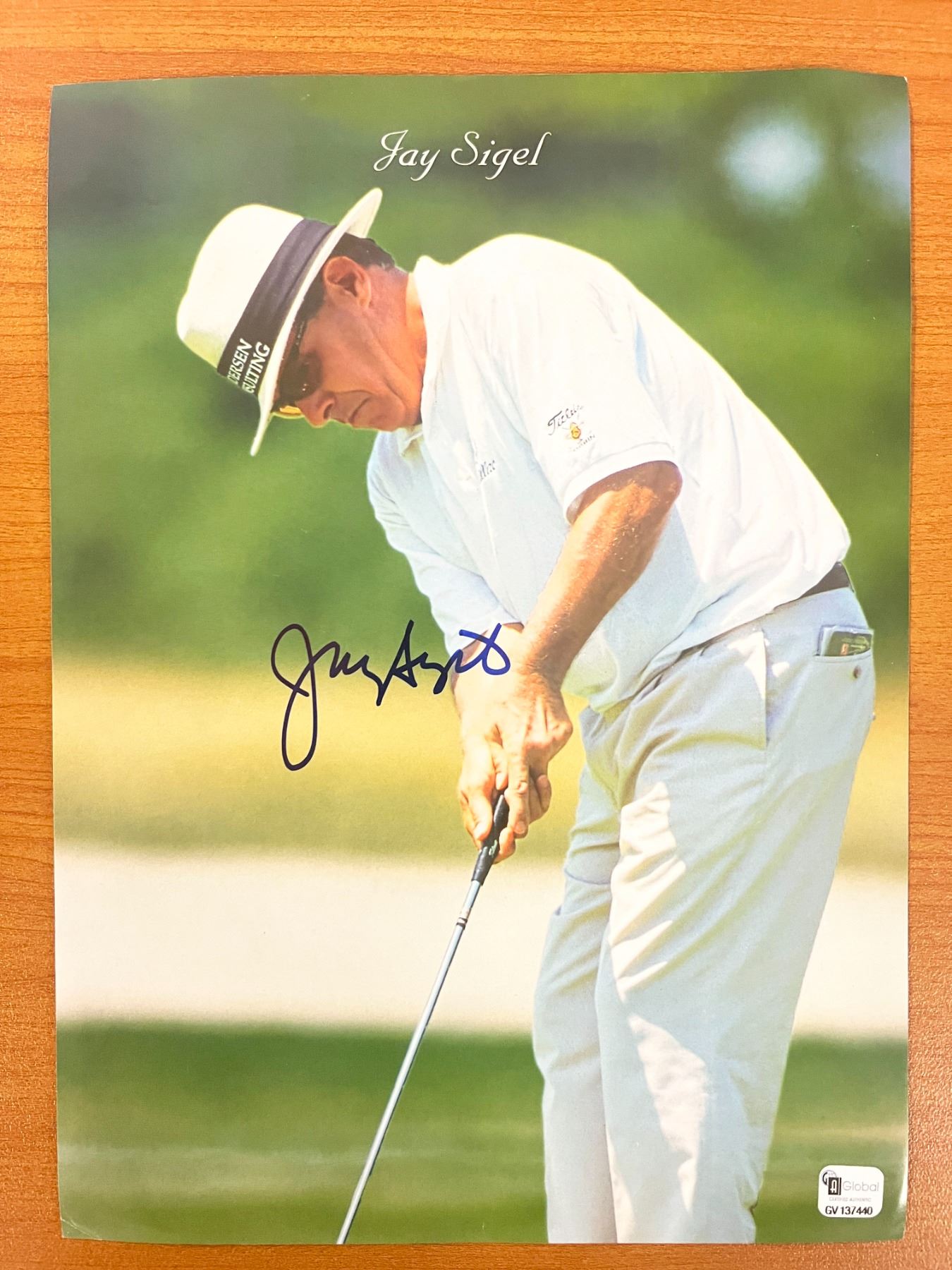 Professional golfer Jay Sigel signed magazine page. Global authenticated. 9x12 inches