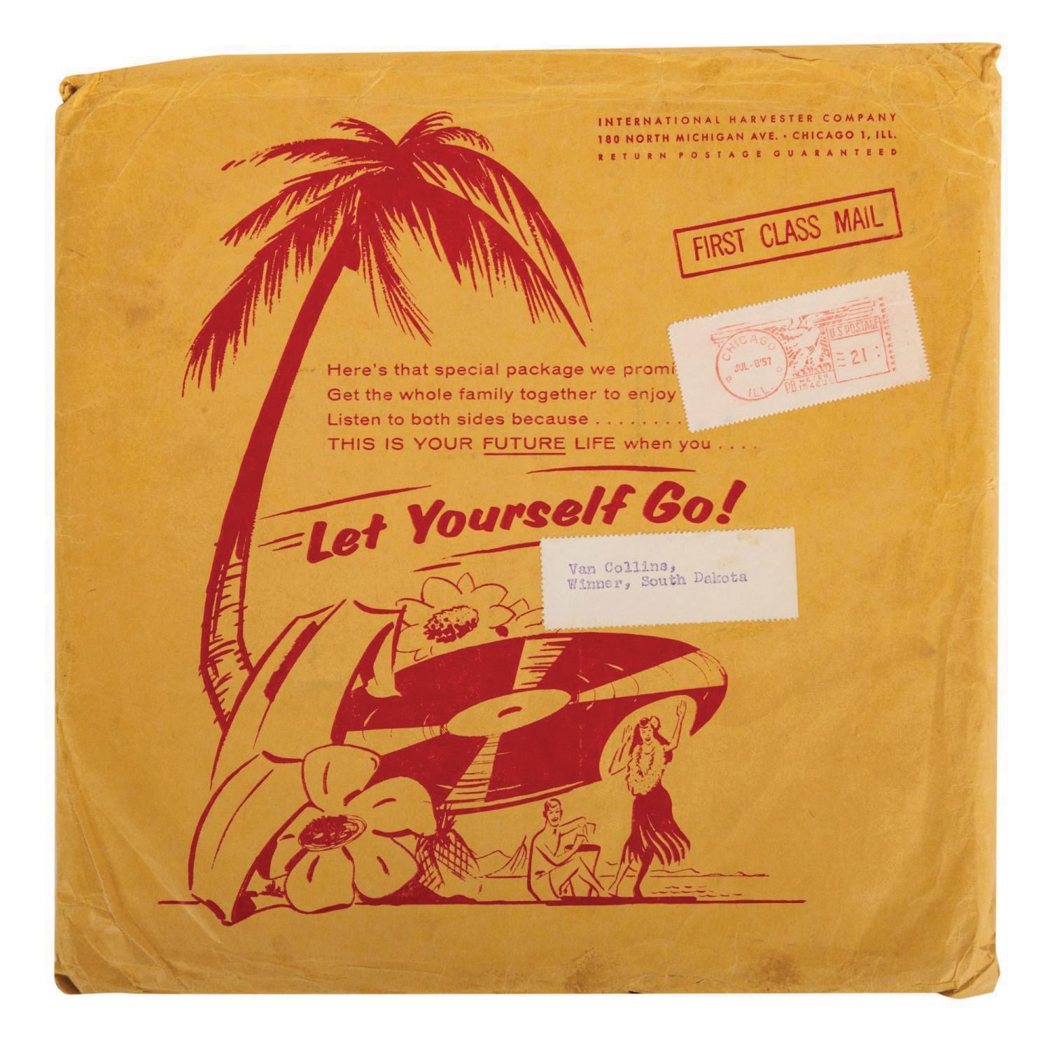 (Disneyland, 1957) An International Harvester Company "This is Your Future Life" radio contest commercial record featuring a specially recorded message from Walt Disney. One track features an excerpt of Cliff Edward's "When You Wish Upon a Star" vocals leading to a special message by Walt who invites the Harvester Company dealers of Chicago, Illinois to "enjoy the many attractions we have created." Measuring 10", the 33 rpm record is in very good condition, with only minor surface scratches. The mailing sleeve is included, which was sent to a winner of the contest.