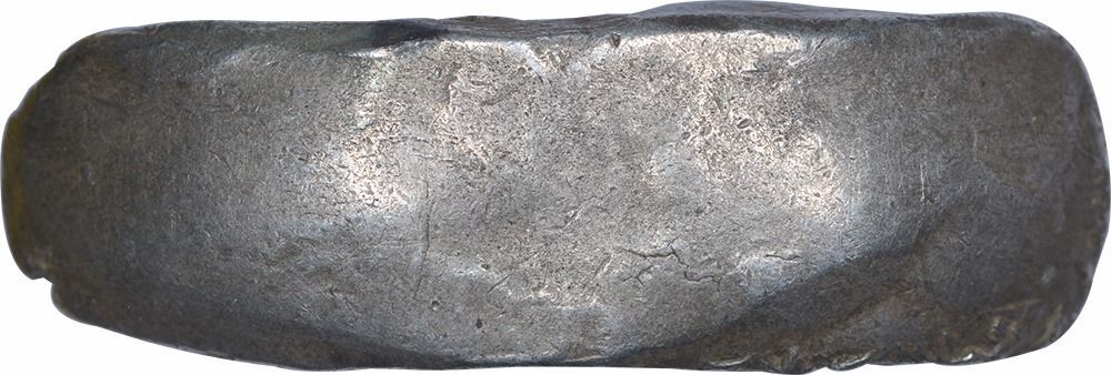 Punch Marked Coin, Gandhara Janapada, Silver Bent Bar, Shatamana, Obv:six armed symbol at each end of the bar, an elongated and broad bar,Rev:uniface,12.0g, 37.50x10.82mm,(Mitch # 4075),about extremely fine,Rare.