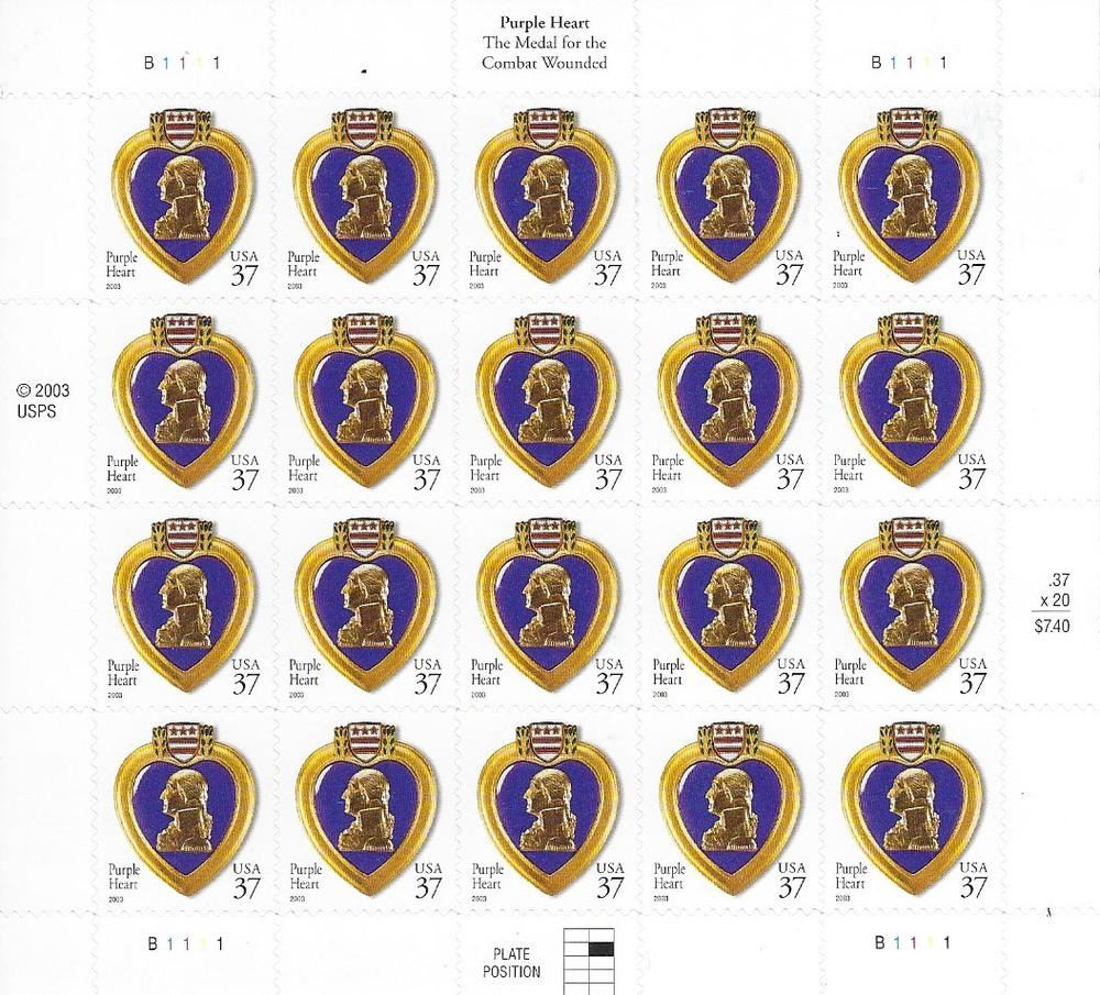 Purple Heart Stamps, Sheet of 20 x 37c, U.S. #3784, 2003