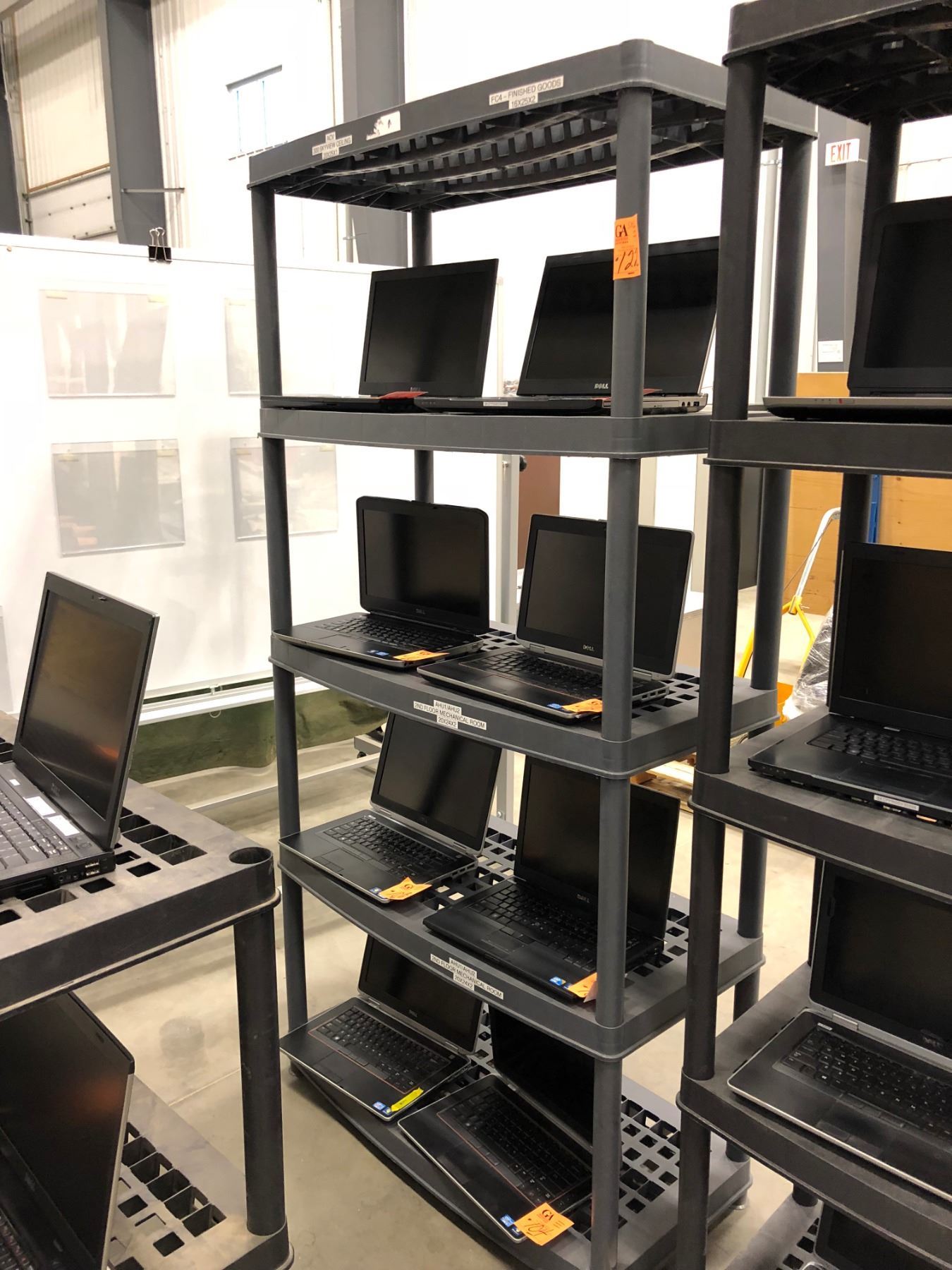 Qty 2 Plastic shelving 72 1/2" x 36" x 17" with 5 shelves, 38 1/4" x 36" x 17" with 3 shelves