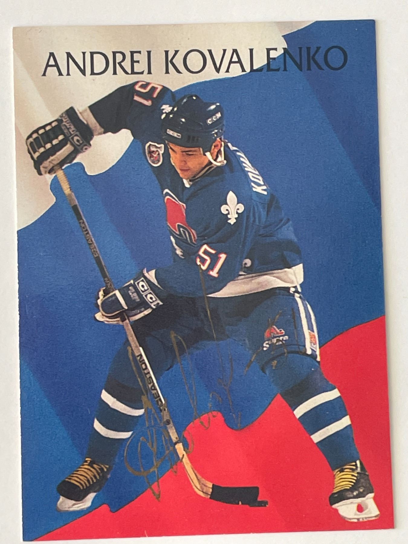 Quebec Nordiques Andrei Kovalenko 1993 Pro Set #223 signed trading card. 2x3 inches