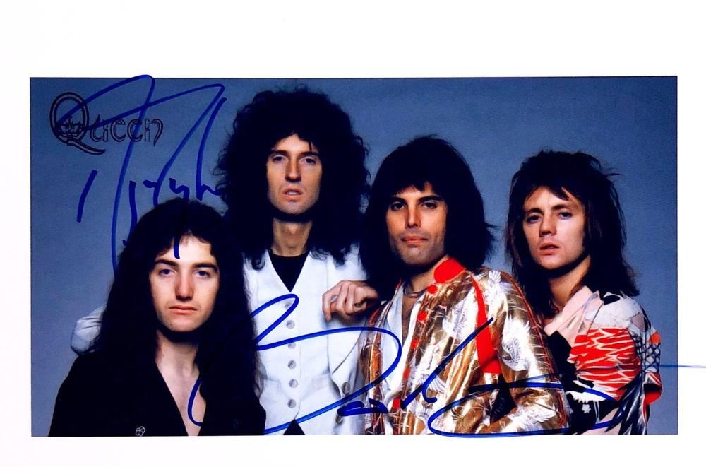 Queen facsimile signed photo autographed by Brian May and Roger Taylor. 8x10 inches. This item is a reprint of an original autograph.