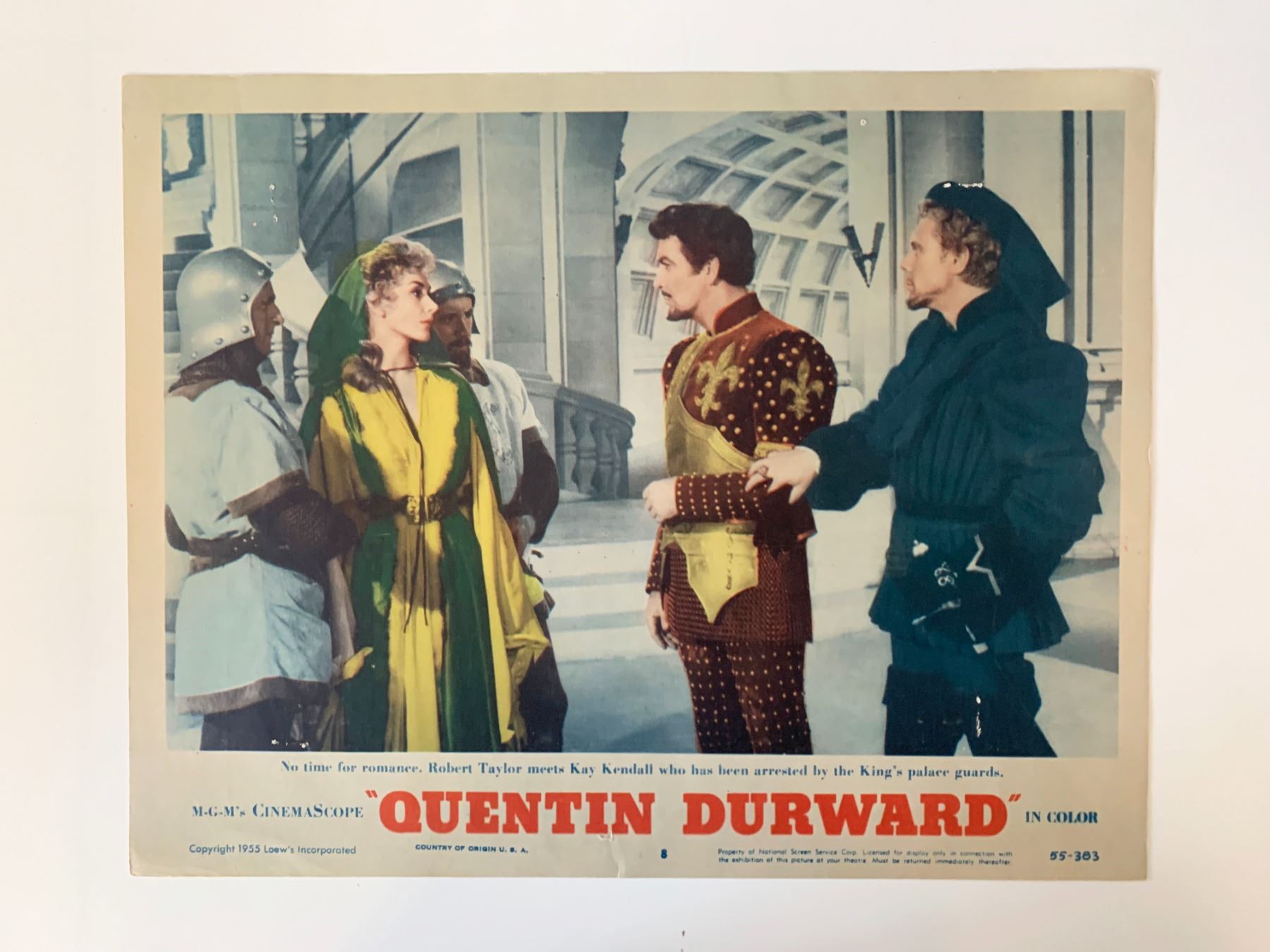 Quentin Durward original 1955 vintage lobby card on heavy card stock. 11x14 inches